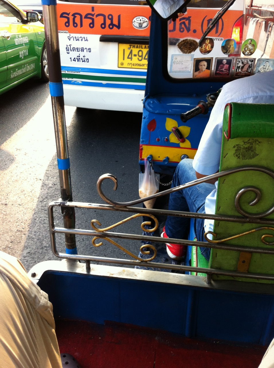 タイに行ったら一回は乗っておきたいトゥクトゥク、長くてデコレーションがスゴイヤツもあれば、短いヤツもある。お値段交渉が面倒ですが、それも旅の醍醐味としてトライする事をお勧めします。乗る前にどんなルートでいけるかを地図で確認しておくことをお勧めいたします。ちょっと回り道をされたりするのですが、一方通行なのか?サービスで見せたいところがあったのか??
