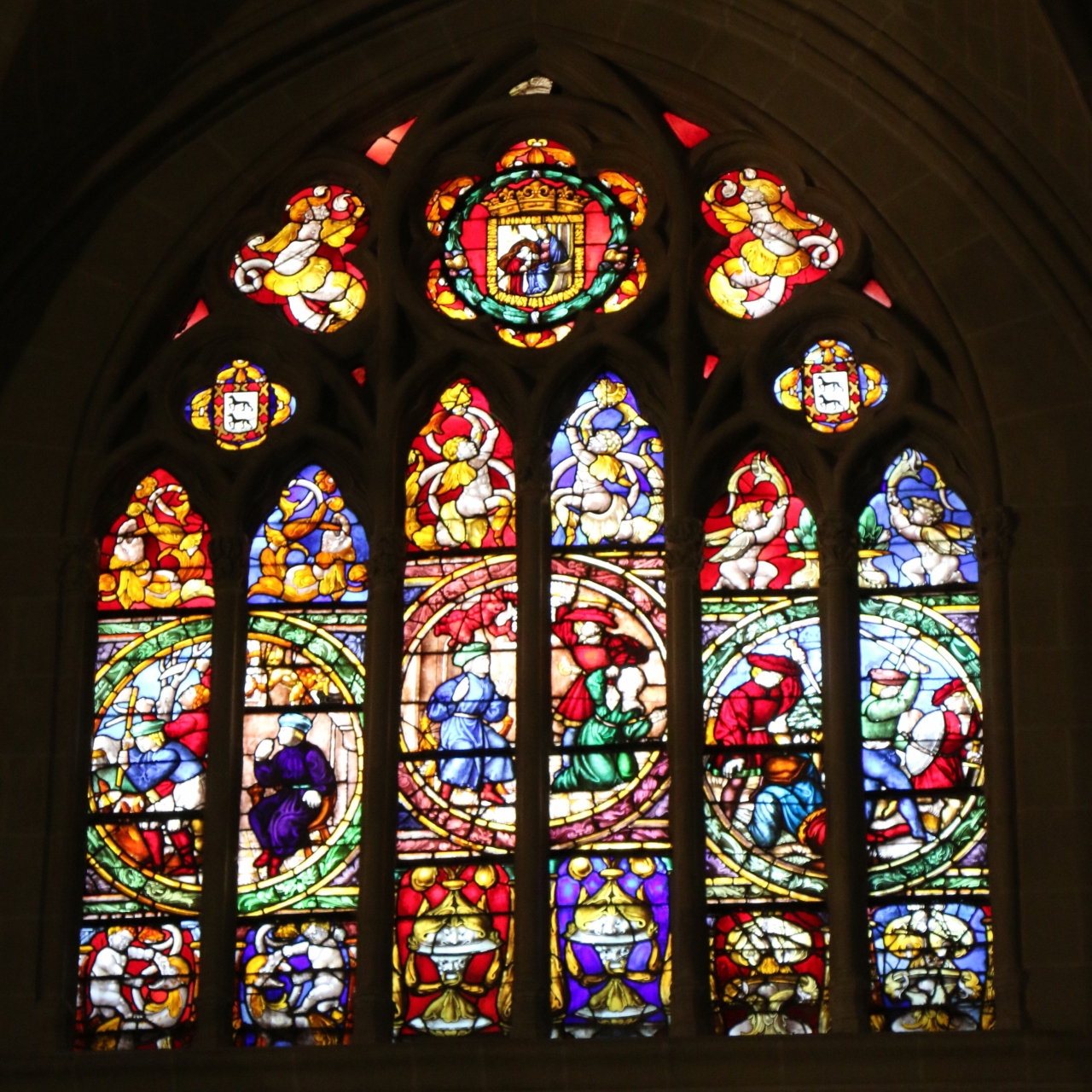 高さ30mのキリストの生涯が受胎告知から順に刻まれている祭壇屏が実に見事ですし、700枚以上あるステンドグラスも美しいです。