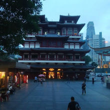 MRTのチャイナタウン駅から街の中を抜けて、奥に進むとチャイナタウンコンプレックスの巨大建物があって、そのすぐわきにこちらの寺院があります。コンプレックスと同様にこちらの寺院も周囲に大きな広場があって、5層の建物で建っているので目立っています。朱色に塗られた柱と梁、白色の壁で5層の建物なだけに、重厚感がすごくあって、押し出し感も強く感じる建物です。チャイナタウンを訪れた際に立ち寄ると気分もさらに盛り上がるとと思います。立寄ったのが夜の7時ぐらいだったので、参拝客も少なくてひっそりとしていました。