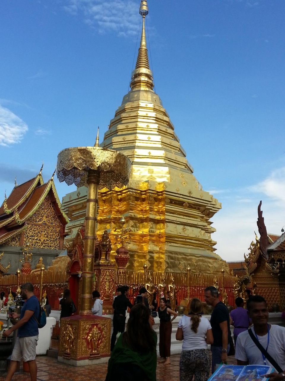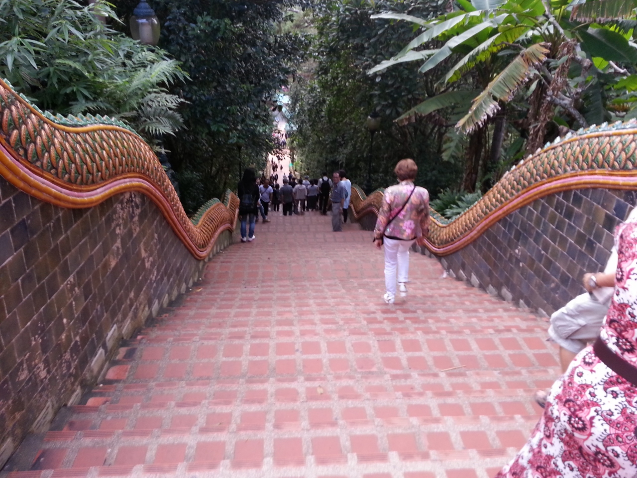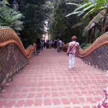 肝心の現地ですが、山のふもとは土産物屋さんが並んでいて、自家用車やソンテウ、団体客で込み合っていました。あいにく何か乗り物で上に上がる列は大行列だったので、仕方なく歩いて登りましたが、さすがに息切れしました。