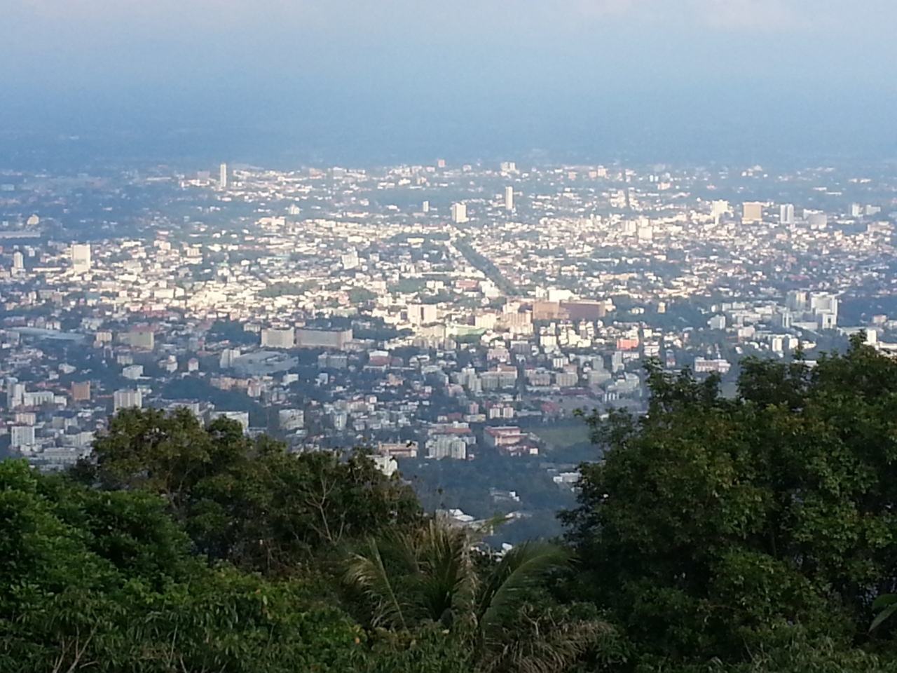 頂上から見渡すチェンマイ市街の景色が最高です。旧市街の塀の場所もくっきりと見え、空港から飛び立つ飛行機も見えます。それだけで来た甲斐もありました。