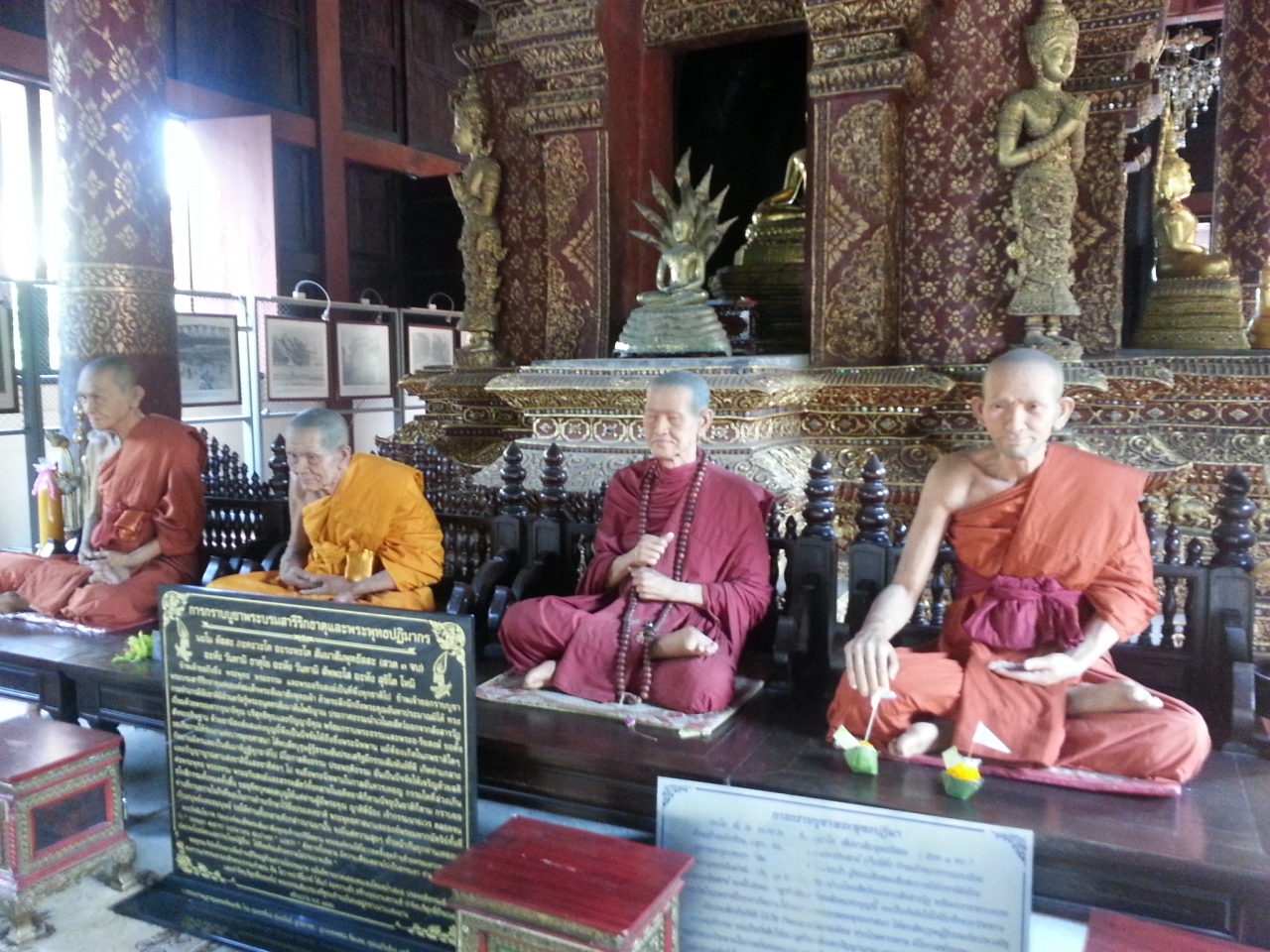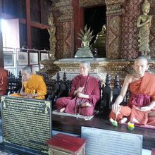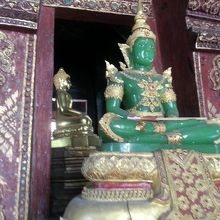 仏像もきんきらきんで立派。本堂内には、リアルなお坊さんの人形?像?、エメラルド物に黄金の仏塔、寺院観光に必要なものがすべてそろっています。