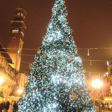 クリスマス時期には大きなクリスマスツリーが設置されており、広場の雰囲気は最高潮になります。