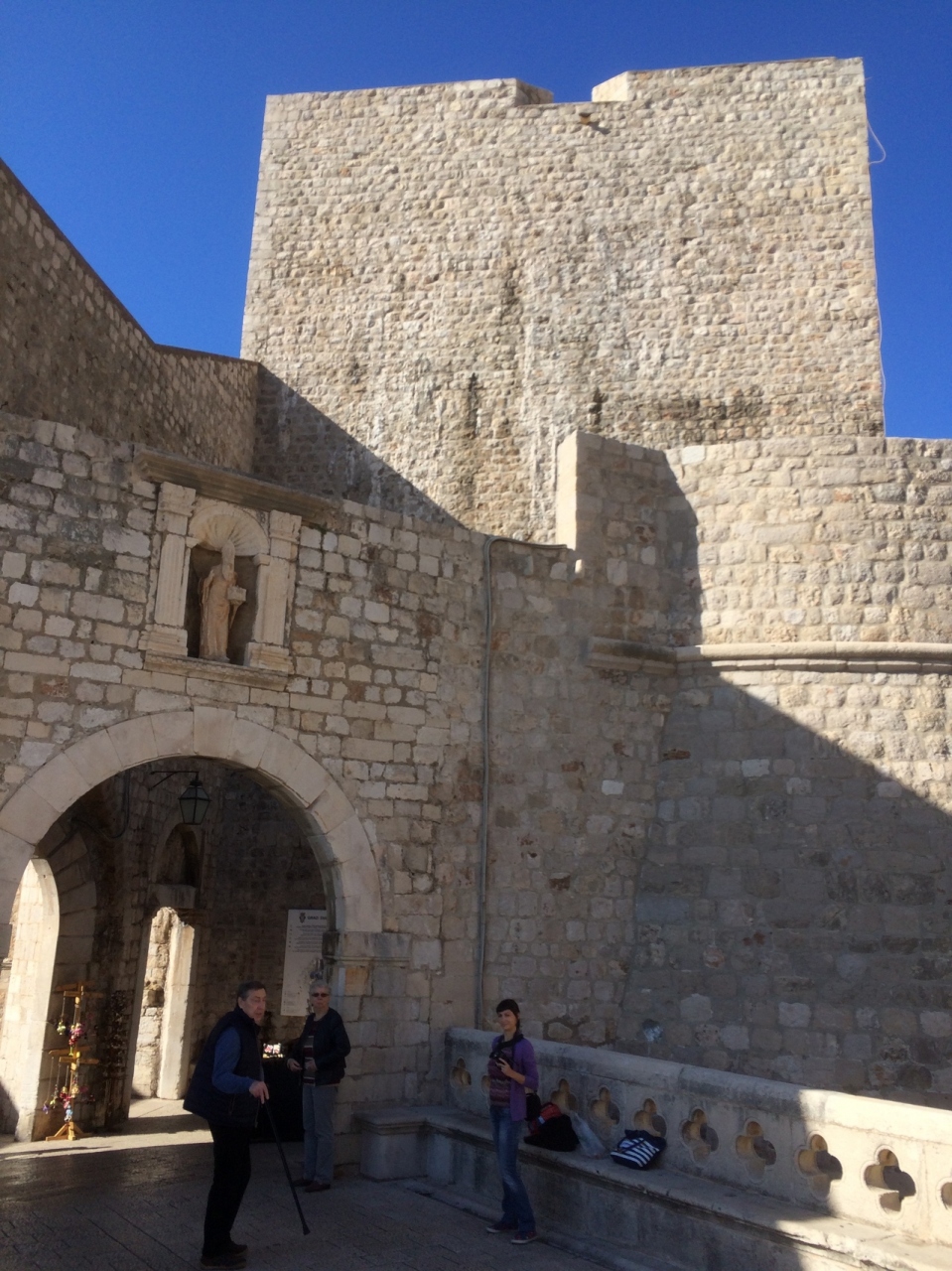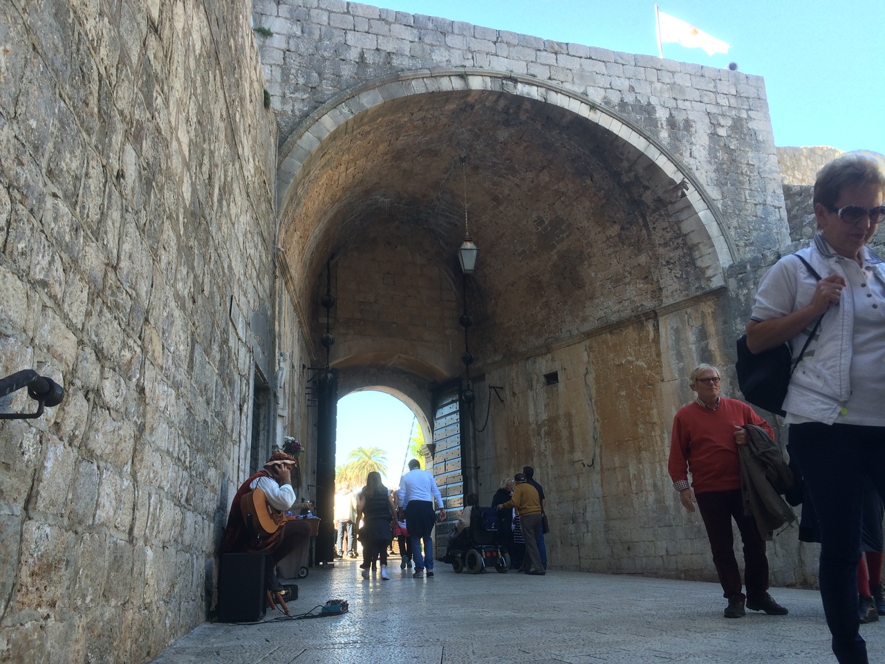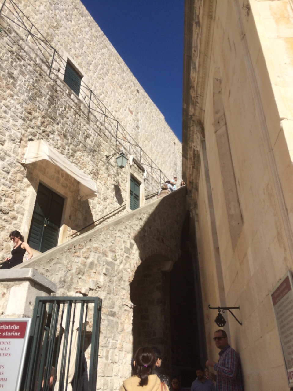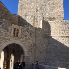 旧市街を囲んでいる城壁は周囲約1,900mあり、厚さは5m、高さは20mという堅牢なものです。有料で城壁の上を歩くことができます。城壁へのエントランスは3箇所あり、反時計回りに歩き、逆行はできません。何世紀にも渡って独立、中立を一貫して守り、他国に戦争を仕掛けず、外部からの攻撃を巧みな外交でかわしてきたドブロブニクでしたが、地震など自然災害や、外部からの攻撃により、城壁は何度も被害を受けてきました。しかし破壊の度に市民、自らの献身的な修復活動によって壁は再生され、今もなお中世そのものの姿を留めています。