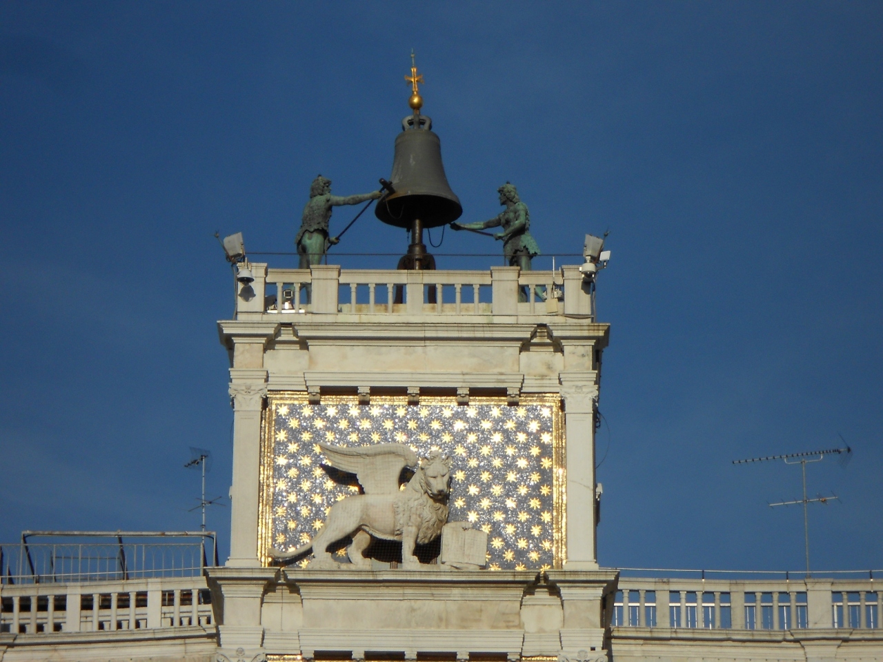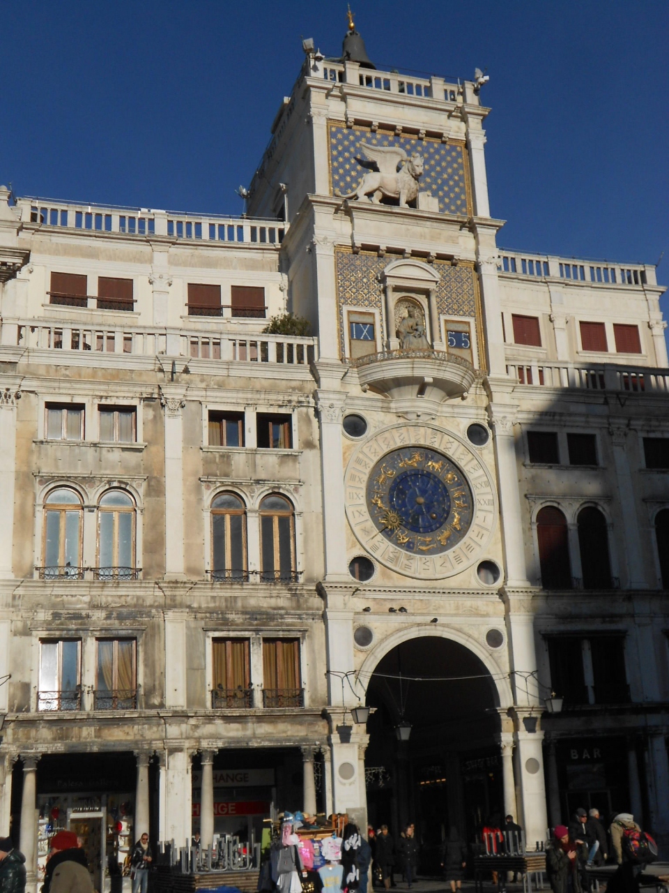 金とブルーの美しい時計塔。Torre dell'Orologio