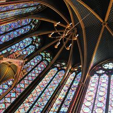2階の聖堂におけるステンドグラスには圧倒されます。