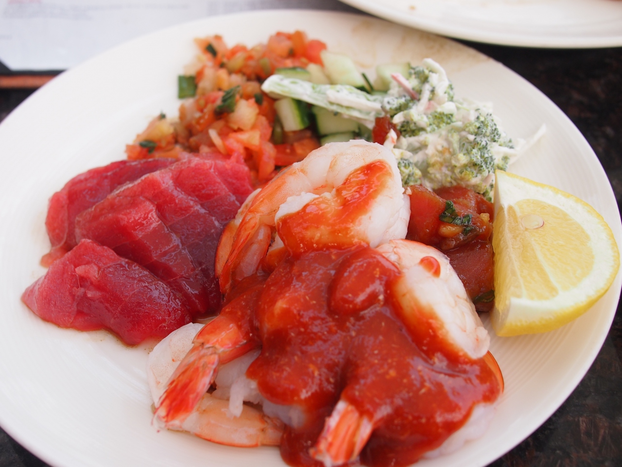 プライムリブは柔らかくてジューシー、シーフードも新鮮で美味しかったです。