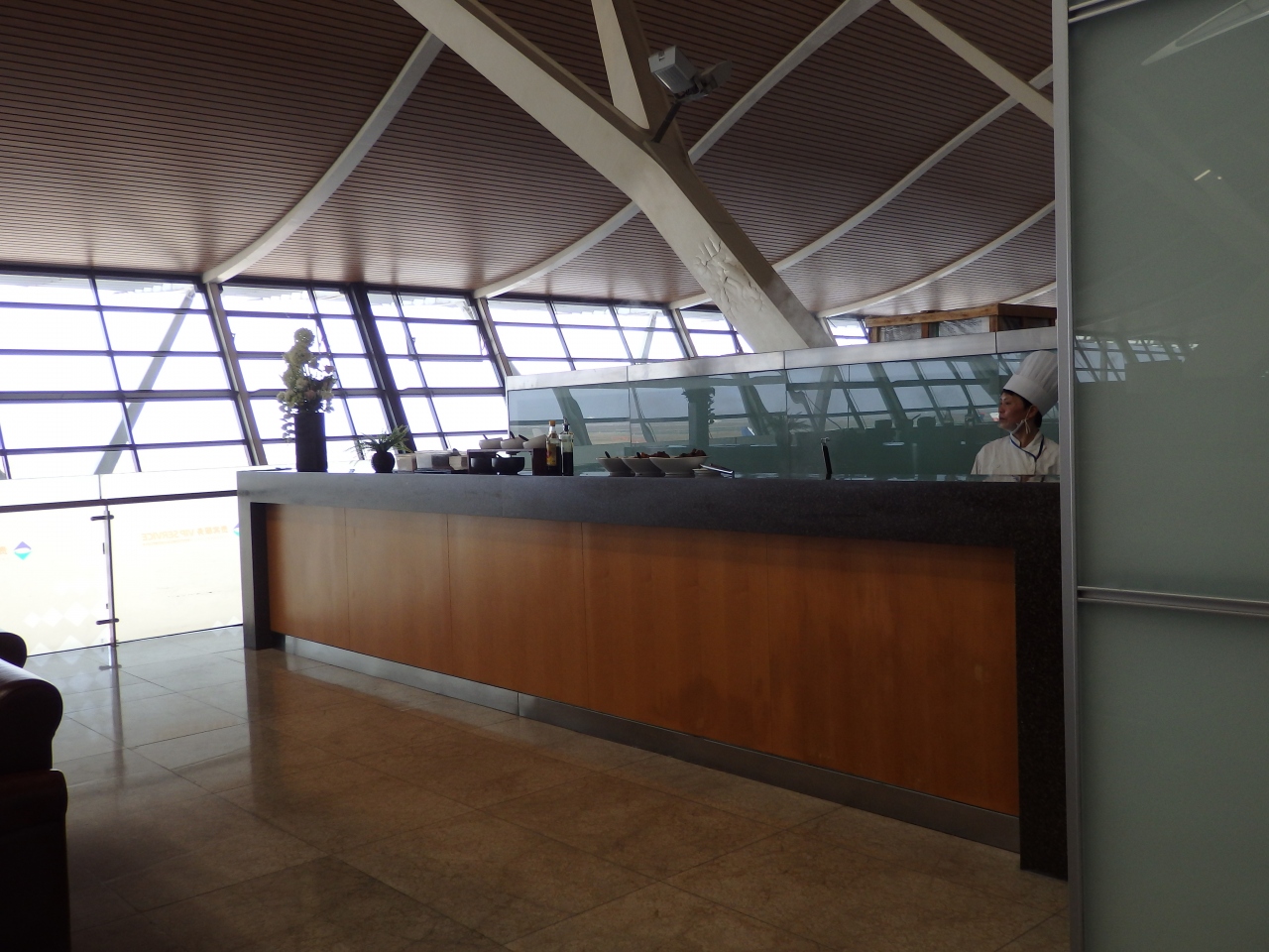 私たちはガラガラだったビジネスクラスのほうに座りましが、ファースト側にある麺カウンターで温かい麺もいただけました。