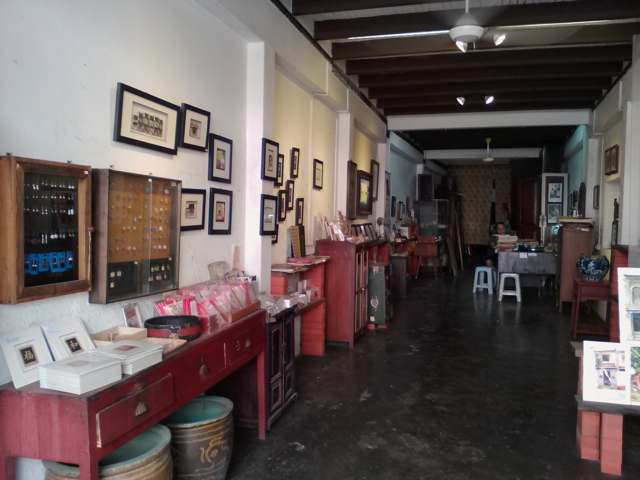 チャイナタウンのJalan Tokongにありますが、表に看板が出ていないのでわかりにくいです。番地の「13」を頼りに探して下さい。ちょっと怖そうな男性が店の奥にいますが商品を見ていてもこちらが声をかけない限り声はかけられません。愛想のない職人といった感じの方です。この店のイチオシはショップハウスを型どったタイルに色付けをし、額装した物。色合いがポップでとてもかわいらいです。サイズによって値段が違いますが85RM〜です。他にはマラッカの町並みを描いた水彩画68RM〜、陶器の動物マグネット2.5RM〜、陶器のピアス19RMなどがあります。