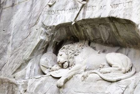 トロリーバスで交通博物館から移動してLuzernerhofという停留所で降り、ホーフ教会の脇を抜けて10分ほど歩きました。うーん。このライオン記念碑とカペル橋がルツェルンきっての名所ということですが、どうなんでしょう…。個人で歩いていたので説明してくれる人がなかったせいかもしれませんが、これを見て「へぇー」には決してならないような。ルツェルンは絵のような美しい街で、カメラを持って旧市街を迷いながら歩くだけで楽しそうなので、ここを目的にわざわざ歩くのは時間がもったいないように思いました。