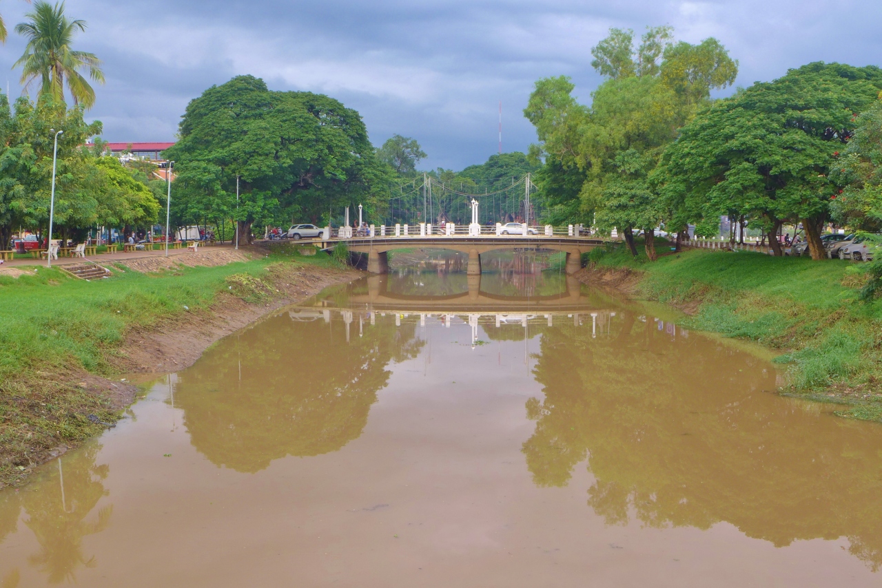 流れは茶色に濁っていて決して綺麗ではありませんが、川岸には樹々も多く植えられているので町の喧騒から離れてほっとできる場所です。