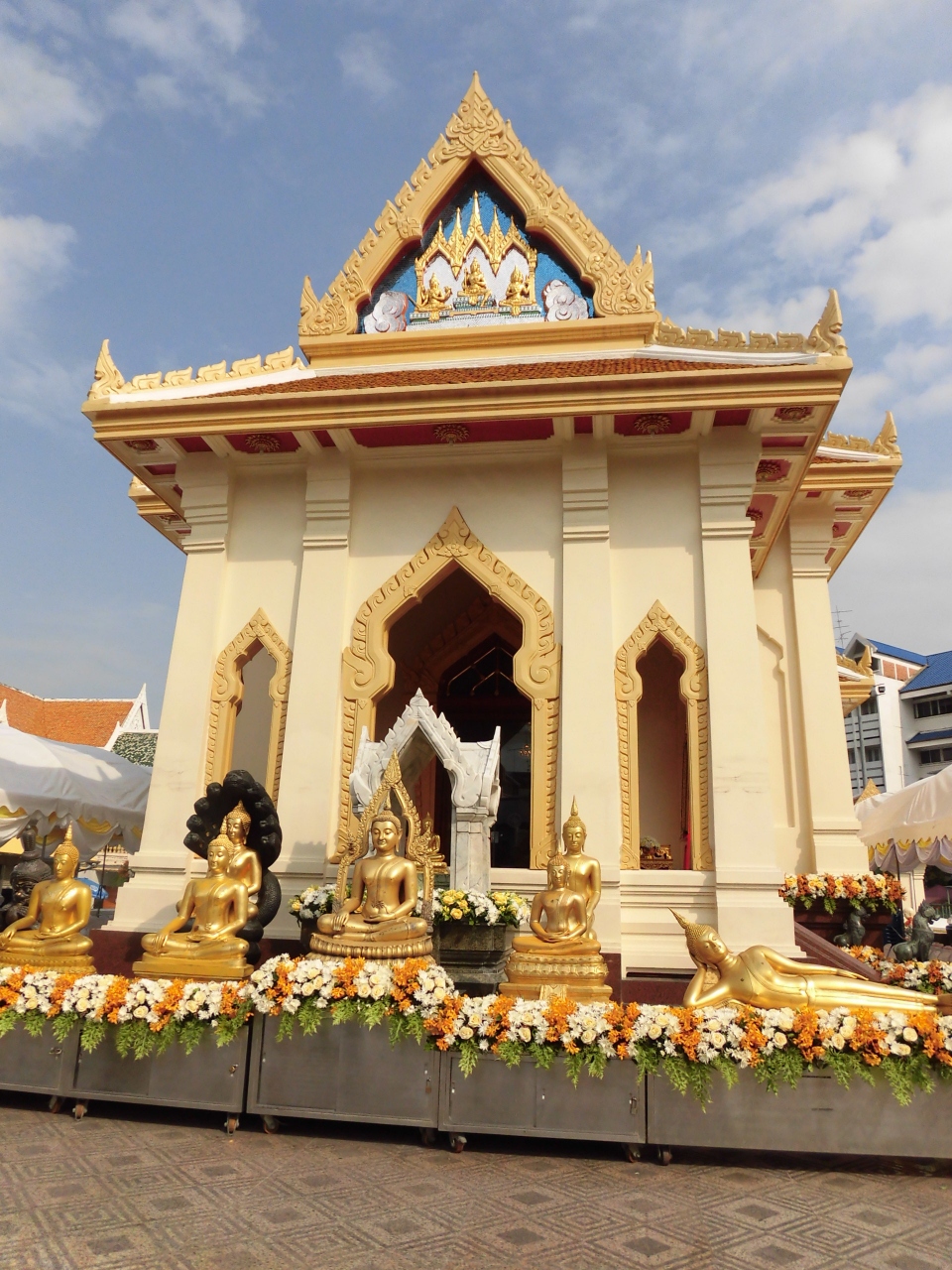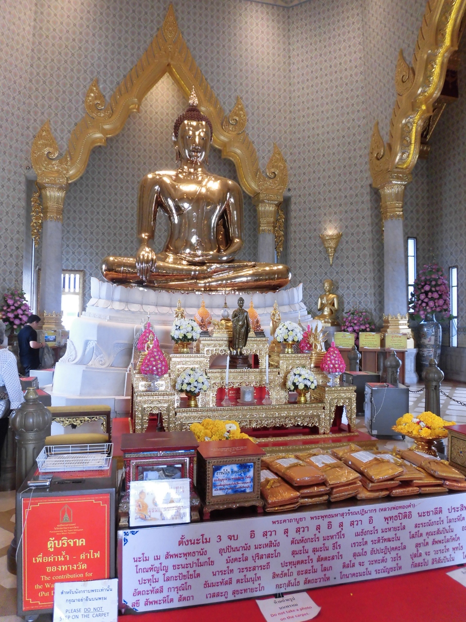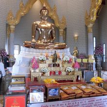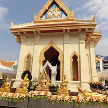 MRTフア・ラムポーン駅から歩いて数分のところにあります。2010年に新築された背が高いお堂が目立っています。黄金仏を見るには入場料40バーツが必要です。新築されたこともあって、お寺のデザインも目を引きますし、内部もとても綺麗です。海外からの観光客がツアーバスで大勢おられました。