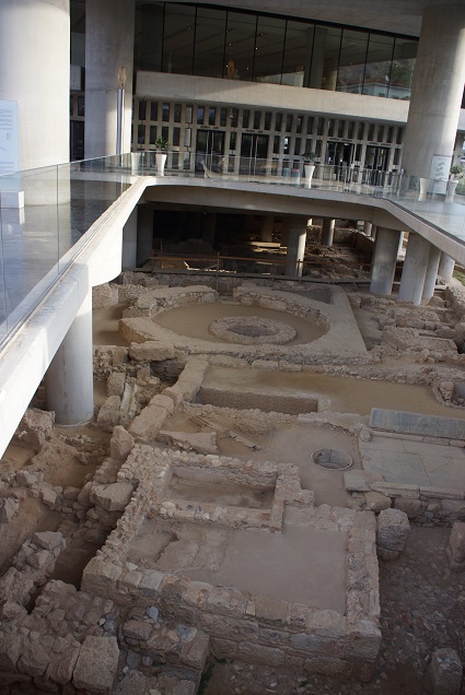 遺跡の上に博物館が建てられており、ガラス越しに遺跡を見ることができます。