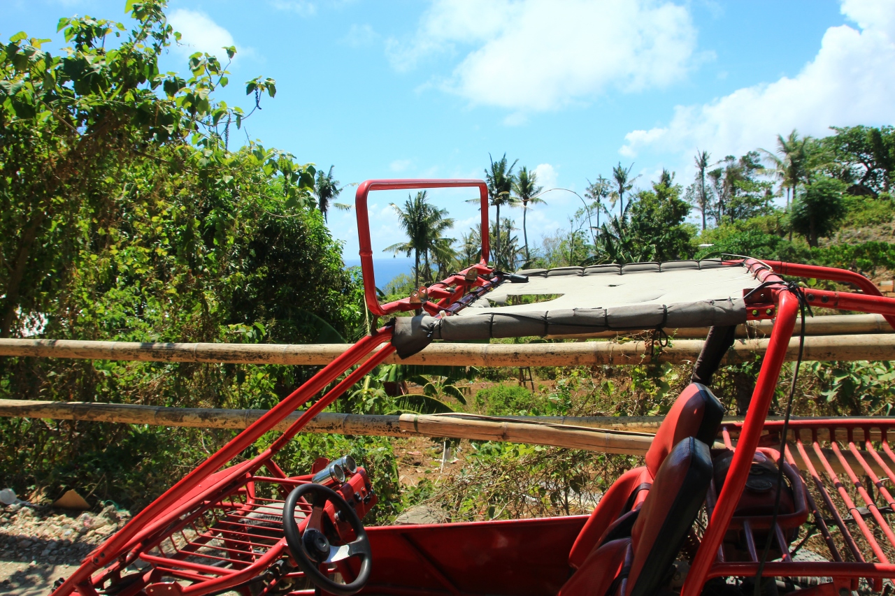 運転自体も遊園地のアトラクションと同じハンドルアクセルとブレーキのみですので、すごく簡単です。免許もなしで乗れますが、心配ならバギーの助手席に乗せてもらうこともできます。