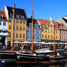 ニューハウンとは日本語で言えば新港というところですが、運河のように掘られた港に面してカラフルな建物が囲み、いかにも北欧という美しい景観を作り出しています。