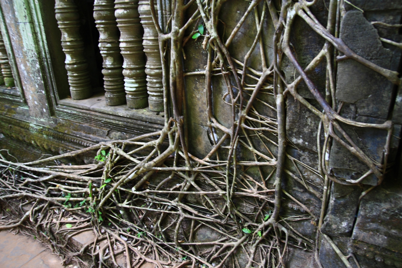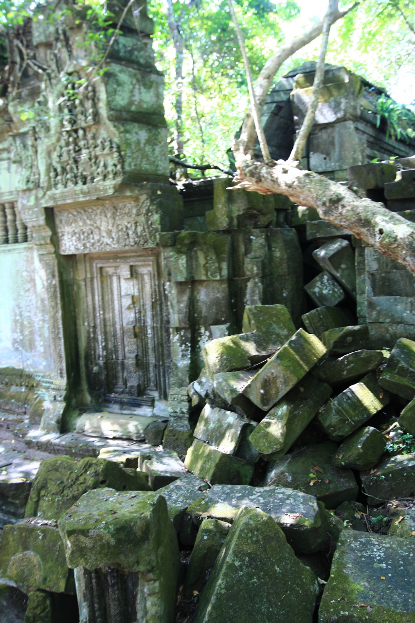同じような遺跡にタ・プロムもありますが、タ・プロムが密林を残したまま修復されているのに対し、こちらは、ほぼ密林から発見された状態の遺跡を観光できるため、迫力があります。