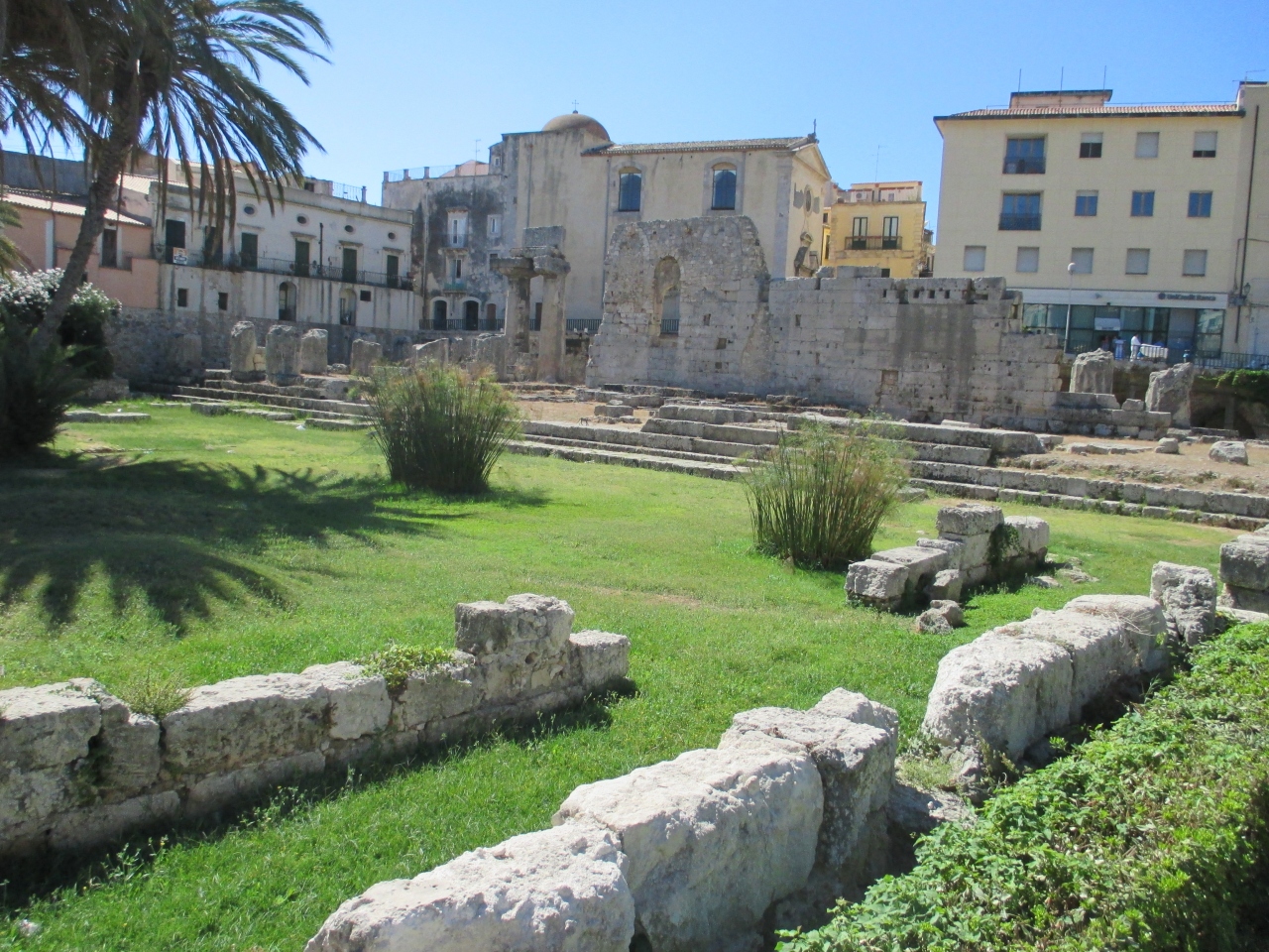 バンカリー広場に面して建っています。紀元前7C末のシチリア最古のドーリス式神殿の遺構です。遺構と言いますが、その広さには驚きでした。その後、ビザンチン教会やノルマン人の聖堂などにも改築されたそうです。