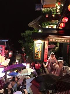 16時台北出発のツアーで行きました。雨の中、途中でバスを乗り換えさせられました。おそらく上の駐車や場がいっぱいだったためだと思います。着いたら、とにかくすごい人。雨も降っているから、混雑が倍増。赤ちょうちんやノスタルジックな雰囲気を楽しめません。人気があるから、観光客が増えたのでしょうが、人数制限でも考えないと、一度行けばいい所になってしまうと思います。