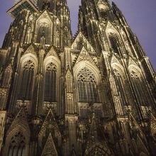 ケルンの中央駅を出るとすぐ目の前に現れます。その大きさから、おもわず「でかっ!!」と言ってしまいました。正面へ行くにはそこから回らなければならないのですが、写真に入らないほどの高さで、とてもすごいです。