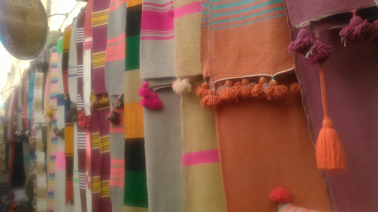 ツアーで訪問しました。駐車場にバスを止めて、漁港の前を通り、メディナの中へ。布地のスーク、香辛料、鮮魚のスーク、食料品、日用品のスークなど、いろいろな種類のお店が、地区ごとに集まっていて、楽しかったです。買い物したかったけれど、迷子にならないようぞろぞろついて歩くツアーだったので、残念でした。