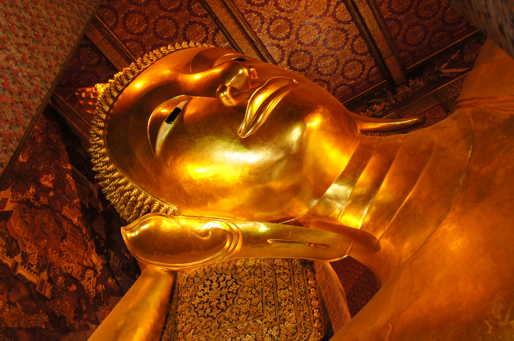 黄金色に輝く寝釈迦像が見られるお寺です。