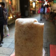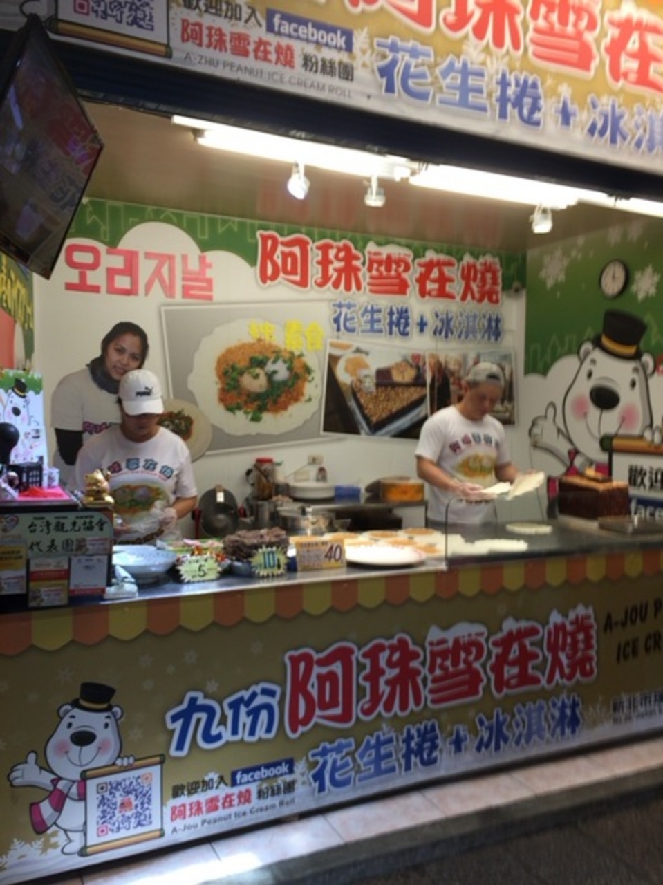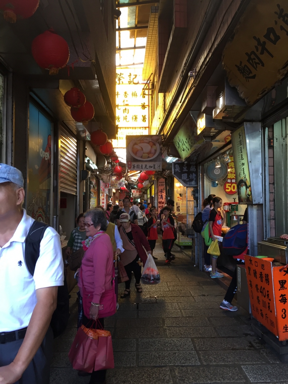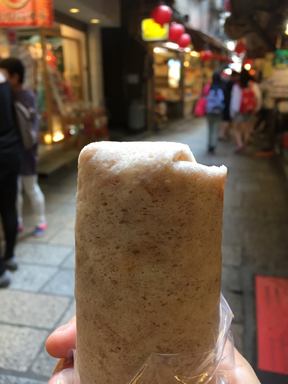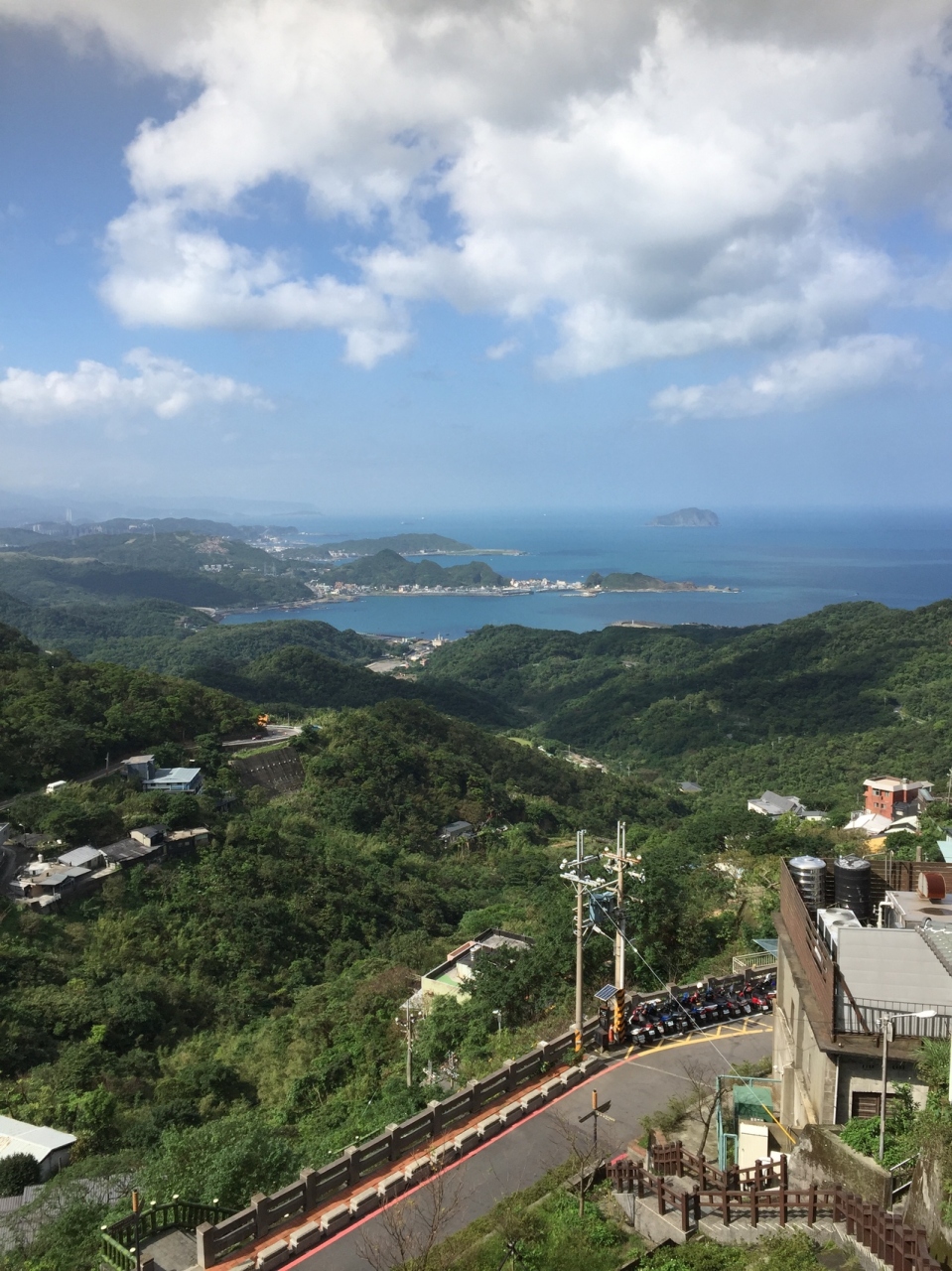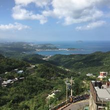 台鉄、端芳の駅からバスに乗って、九份へと向かいます。江の島みたいに両側にお店がいっぱい。ピーナツ入りのクレープで巻いたアイスと魚のすり身団子スープを食べました。観光客がいっぱい、景色も良くて賑やかで活気がある町です。