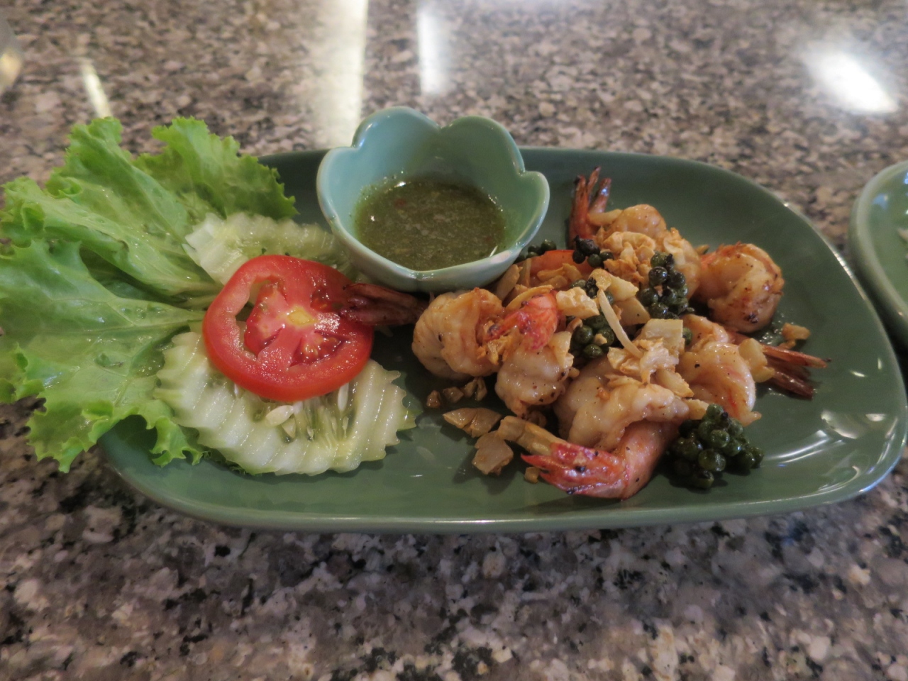 オーダーしたのは、レッドカレーと海老の薄揚げにガーリック・胡椒味。