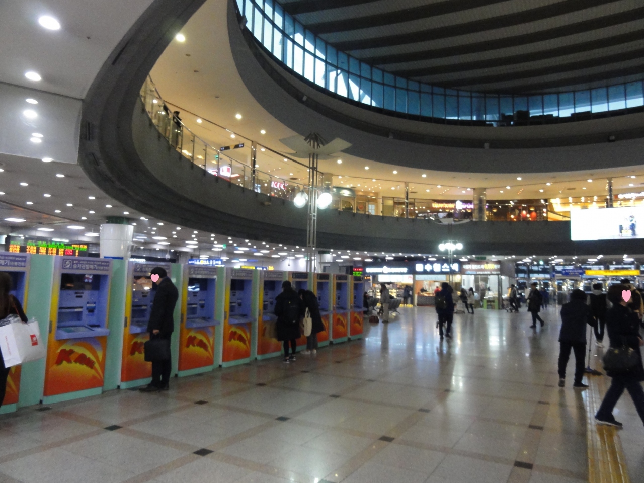 駅前から韓国民俗村へ無料シャトルバスが出てるので1号線利用で水原駅へ行きました。地下鉄は1号線、ブンダン線、国鉄とKTXも乗り入れてる大きな駅です。券売機もたくさん並んでました。改札を出ると円形の広場でAKプラザにも直結、広場の上は回廊のようになっててファーストフード、カフェなどあります。4年ぶりに行きましたが、あちこち綺麗になっていました。