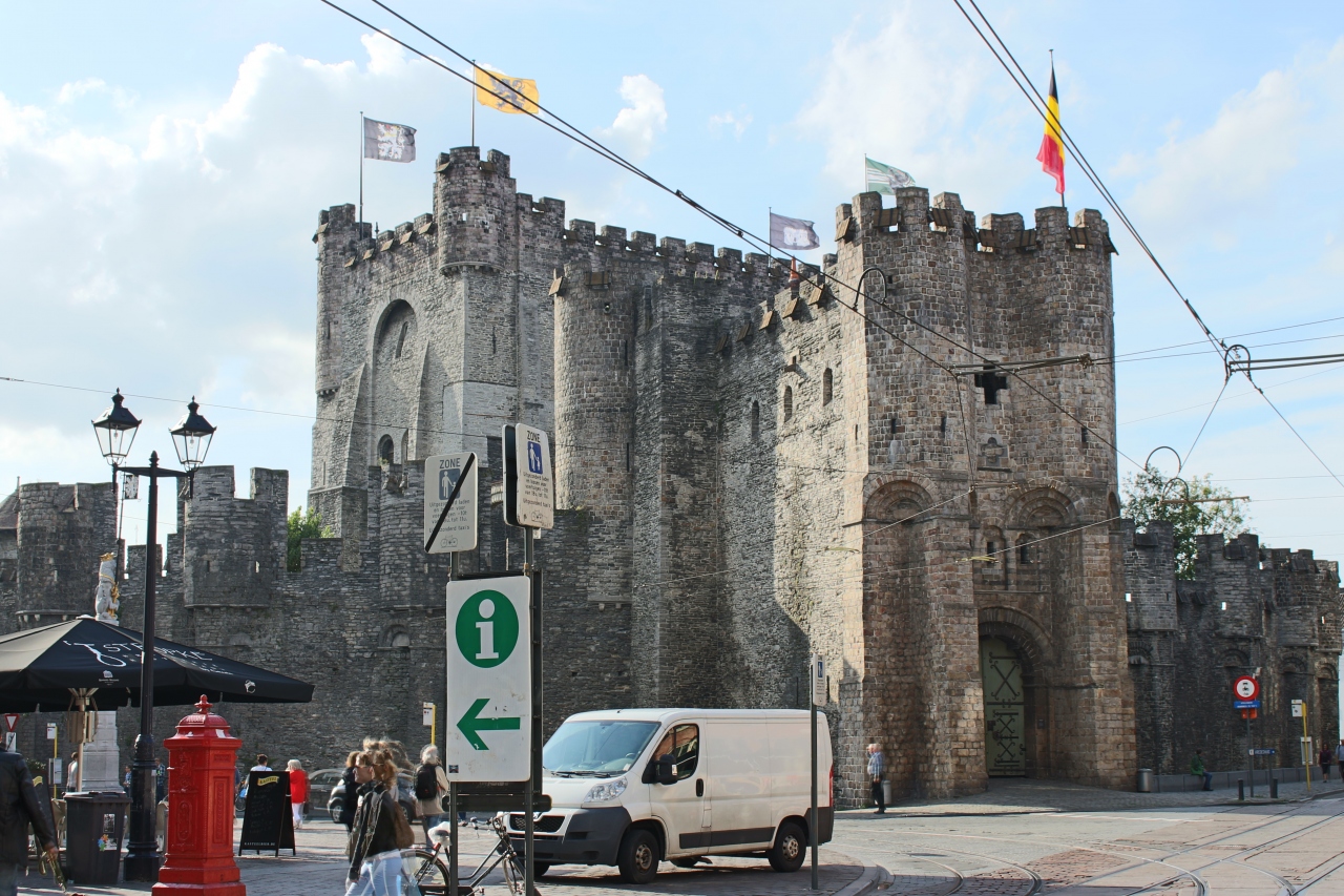 入口正面から見ると、非常にゴツゴツした感じでまさに城塞といった感じですが、川沿いから見ると、少し優美に見え城館という感じを受けました。見張り台があり、ゲントの街が一望とのことでしたが、鐘楼に登ったのでこちらはパスしました。
