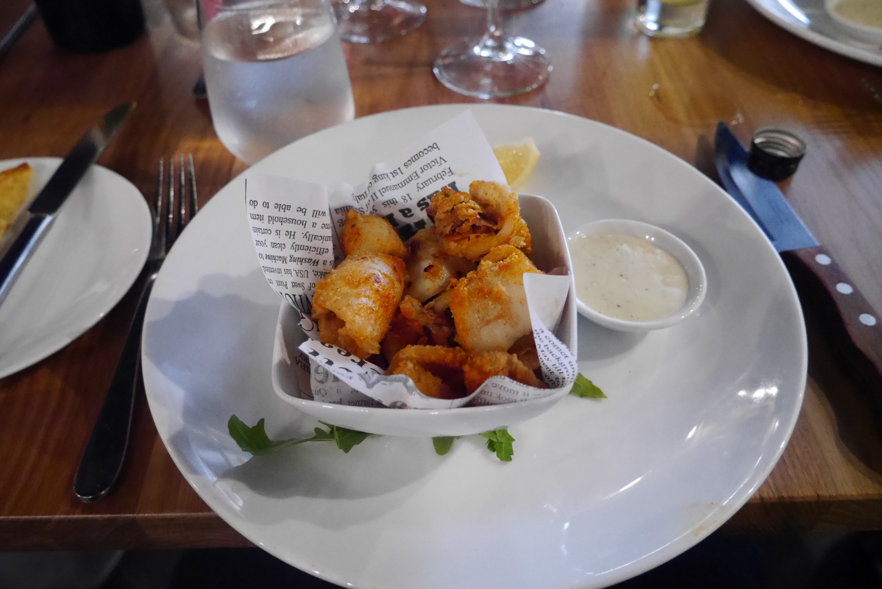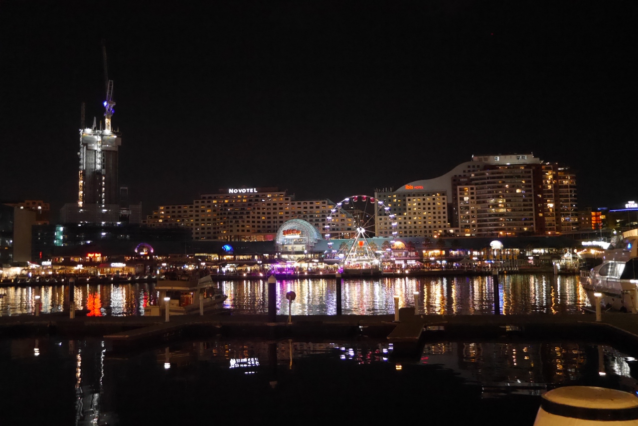 ダーリングハーバーにあり賑やかなお店です。ツアーの夕食で利用しましたがガーリックトーストで始まり、小ぶりなカラマリと続き、メインの籠一杯のフライドポテト付きのステーキは肉厚で焼き加減も良かったです。このお店のブランドラベルのワインもあり、美味しくいただきました。料理もそれほど待つことなく適宜サーブされ、楽しい夕食が頂けました。店の前はハーバーで、海面に写る夜景も楽しめますが、車は入れないので少し歩きます。