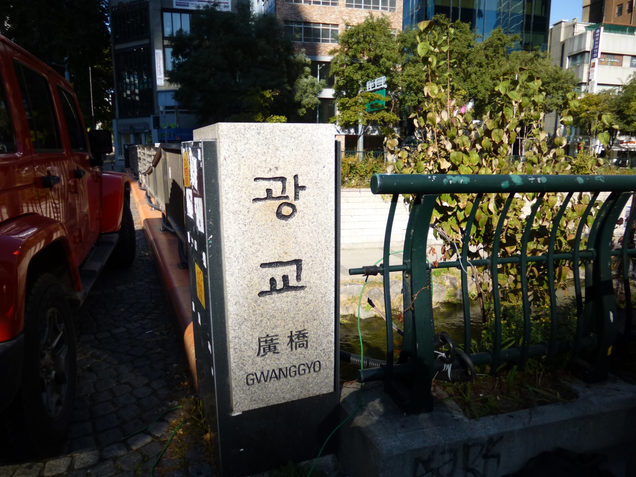 仁寺洞からみょんどんへ歩いて戻るときに、渡りました。鐘路を流れている清渓川にかかっている橋です。橋の上では、大きな金魚の提灯の用なものを、広げている人がいました。川に飾るイベントの準備をしているようでした。