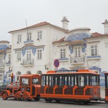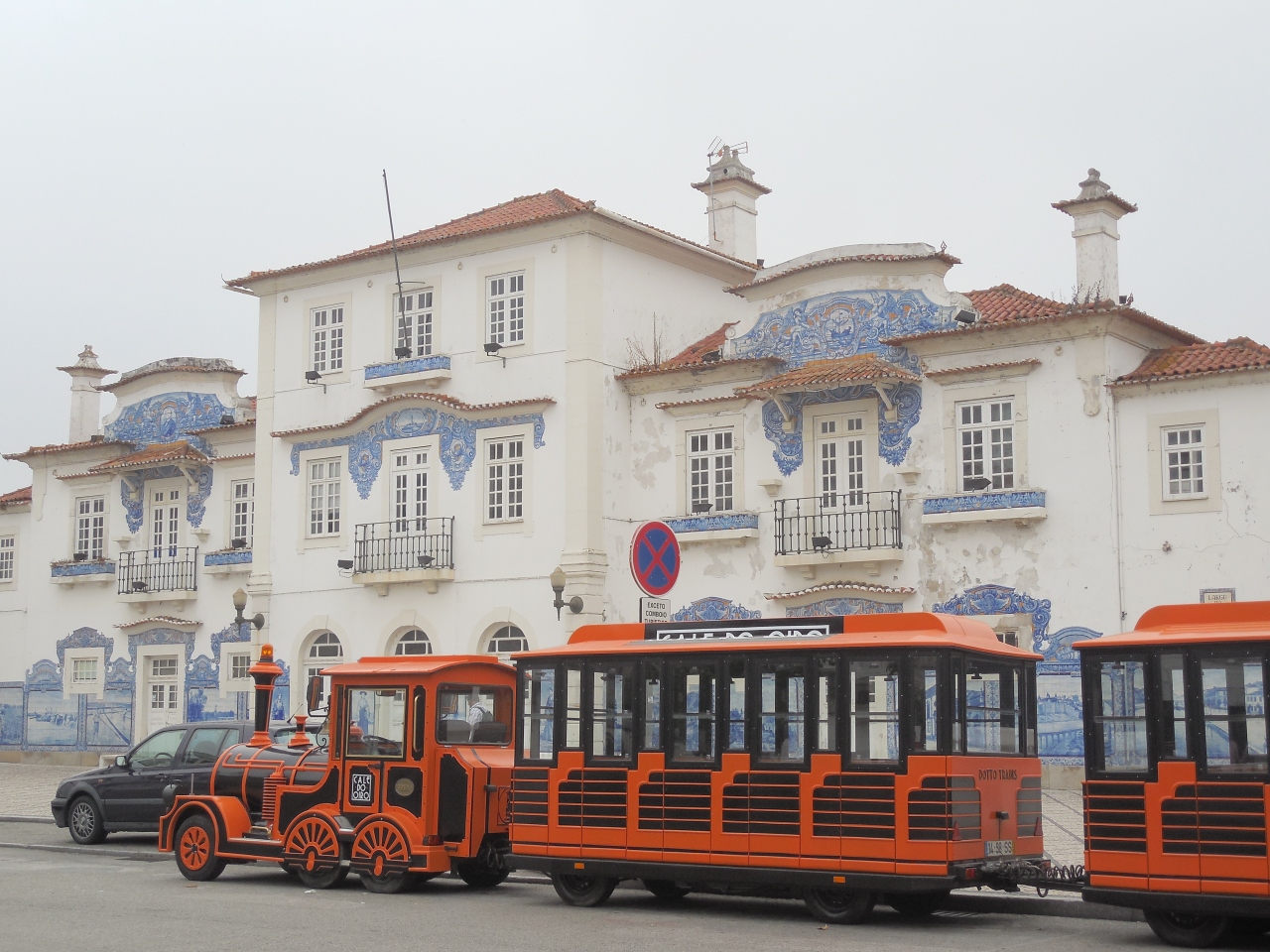 ホームを降りると何故か牛の置物がありました。すぐ隣の旧車の外壁のアズレージョは見事でアヴェイロの風景が描かれています。