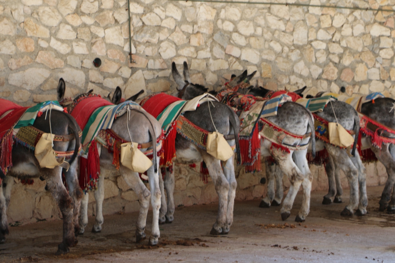 路線バスのバス停やツーリスト・インフォメーション、観光バスの駐車場、ロバタクシー乗り場などがあります。 ツーリスト・インフォメーションの裏側(広場とは反対側)に大きな村営の駐車場の建物があり、出入口は一本裏のオリバル・ドン・パブロ通り(Calle Olivar Don Pablo)にあります。