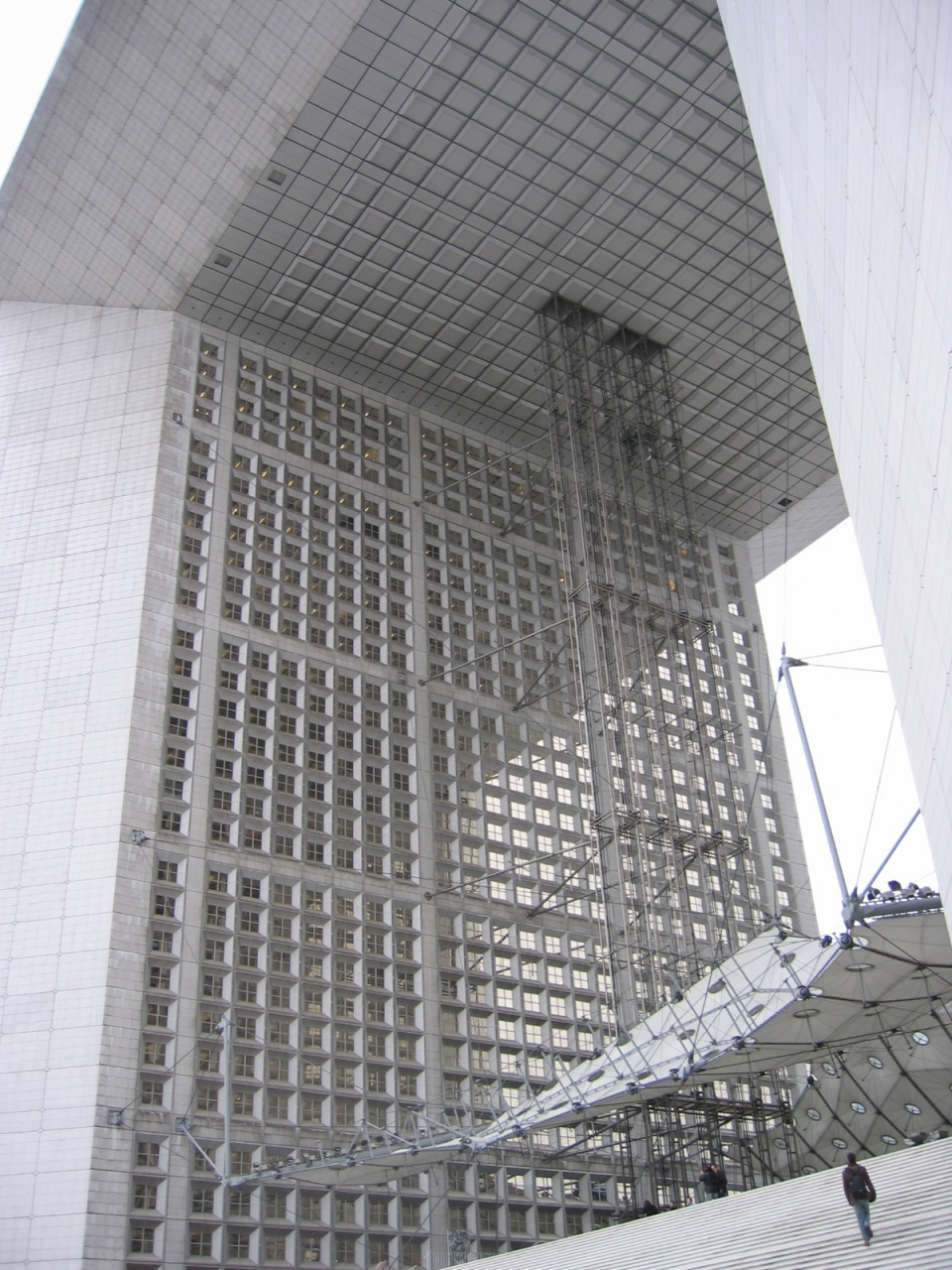 エトワール広場から西を向くと遠くに見えるのが新凱旋門です。なんでまたこのような奇抜なものをとも思いましたが、この地域はパリ新都心のオフィス街になっており、まあ、さもありなんという感想でした。通りに対して正面に向いているのではなく、少し傾いて建てられていました。