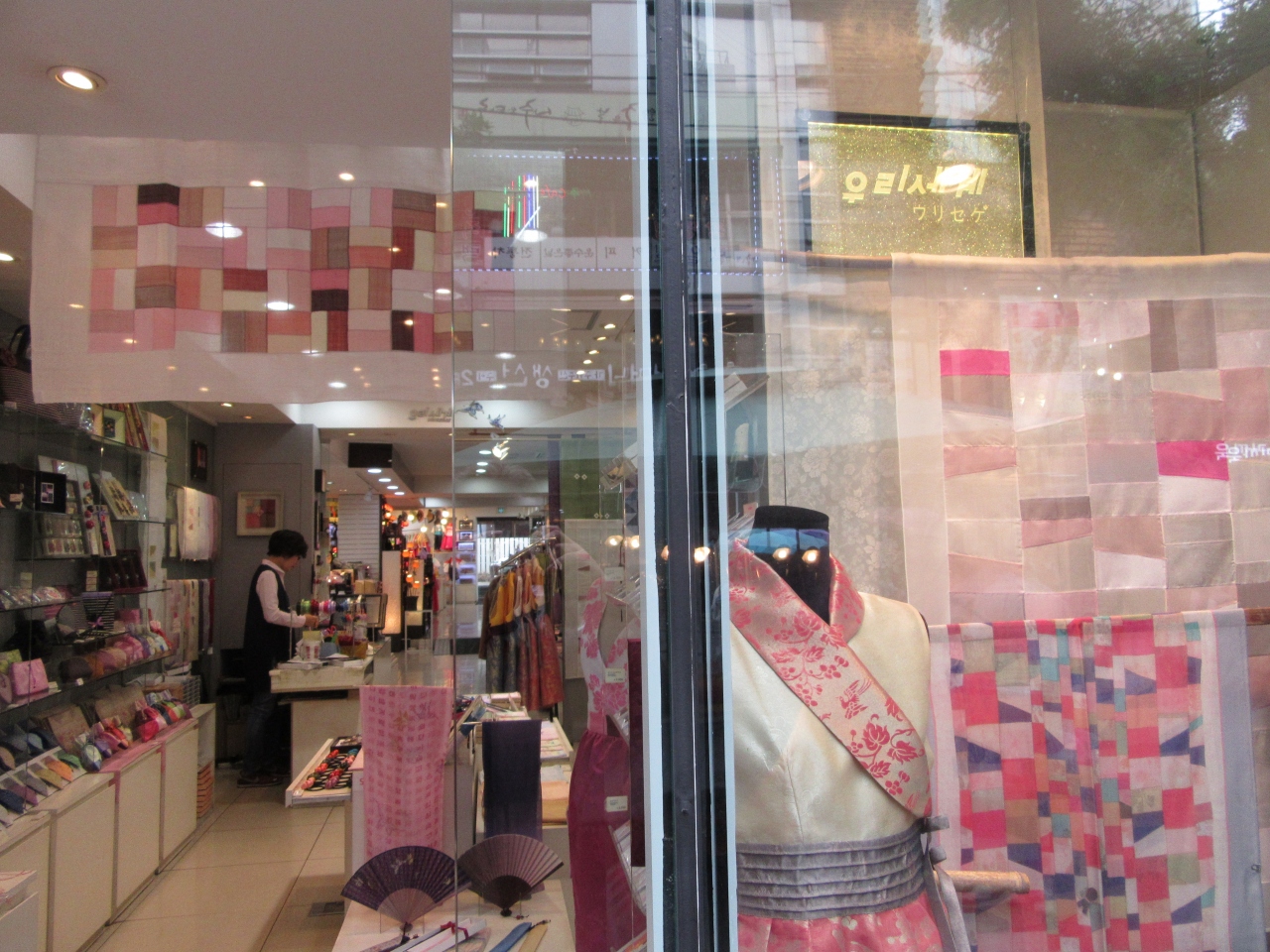 仁寺洞にある商業施設の一角(路面沿い)にあります。渋めの色遣いが独特な女性ものを中心とした袋などの小物があれこれ置いてます。周囲への土産に袋物を続けて買っていたので、今回は扇子(カバー付)を購入しました。日本にはない素材・デザインなど品は良いと思いますが、ただ、値段もそこそこします。激安店ではありません。