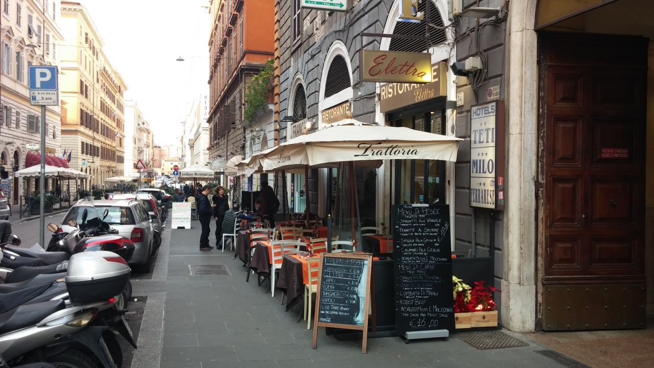 エレットラはテルミニ駅の近くに位置してアクセスが良いレストランです。ここはランチメニューが10ユーロですが、サラダ、パスタ、カプレジェ、豚肉のステーキまで含まれており、コストパフォーマンスは本当に様々な料理を味わうことができた全部美味しかった。赤ワインハーフボトルを注文して一緒に食べたので、本当に満足のいくランチでした。
