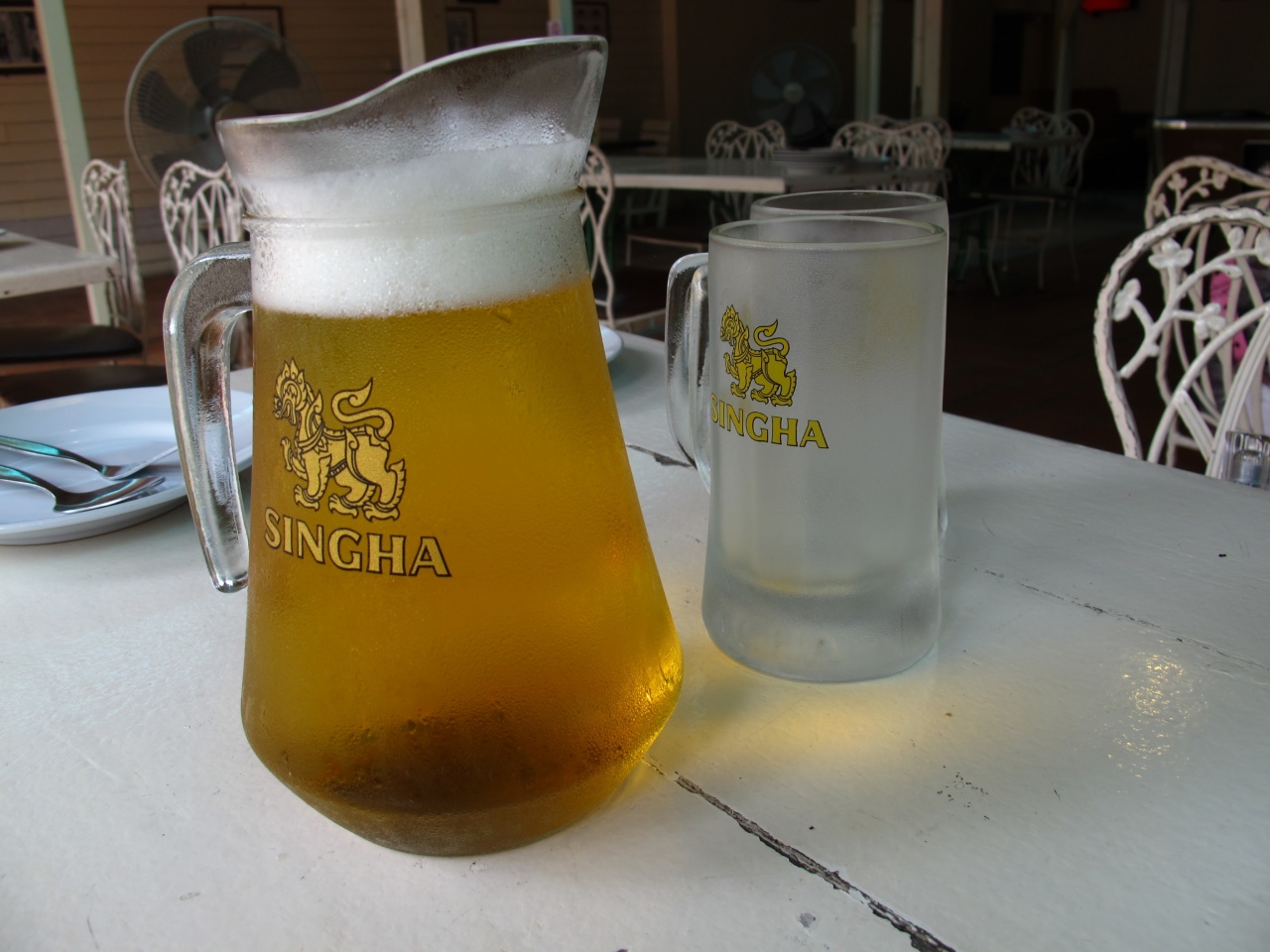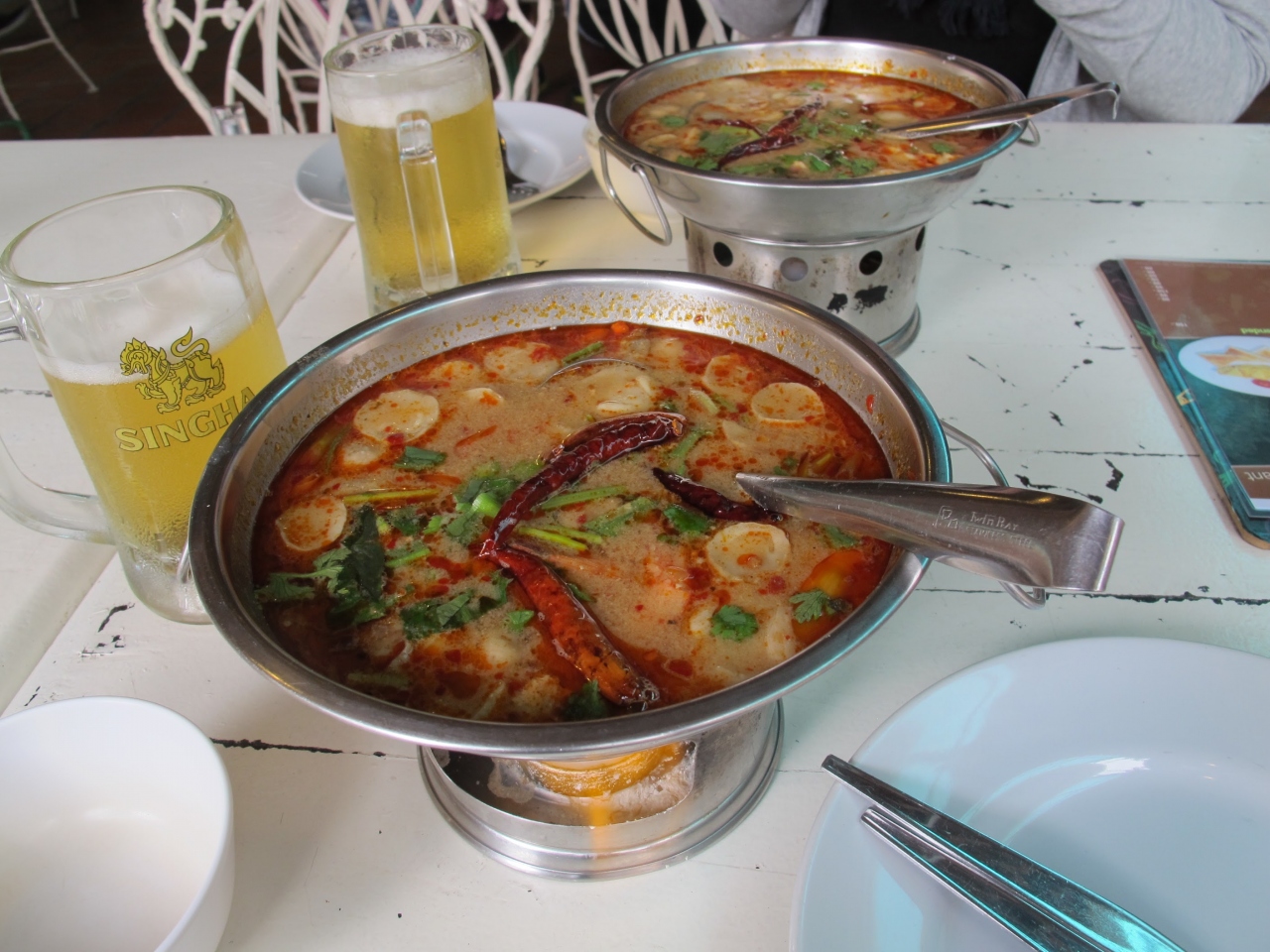 カレーも気になりましたが、トムヤムクン(エビ)とチキン入りのトムヤム、ビール(シンハー)を注文しました。