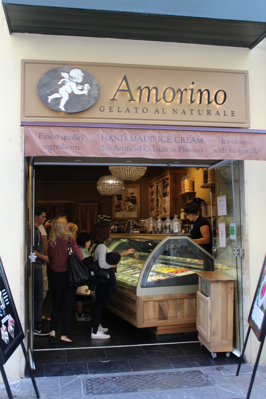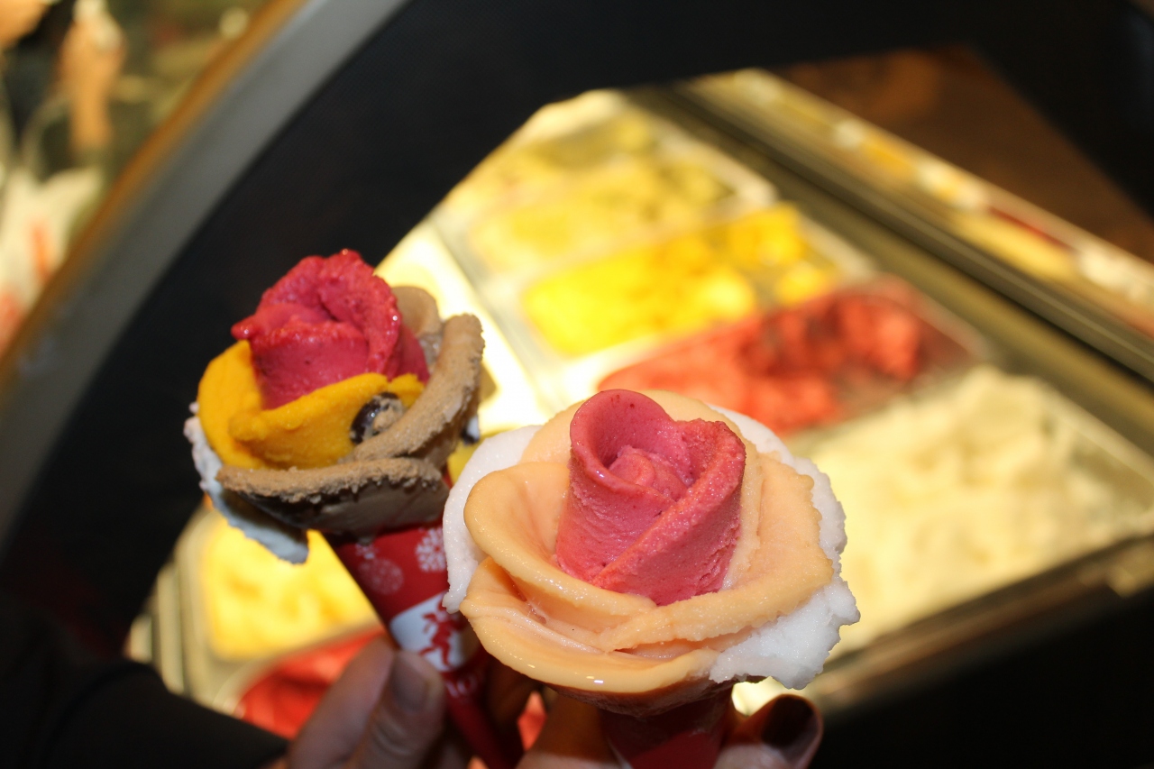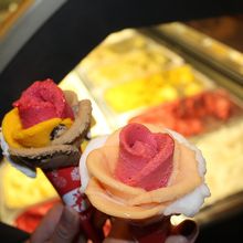 私は1番小さいサイズで、3種類のジェラートを選びました。