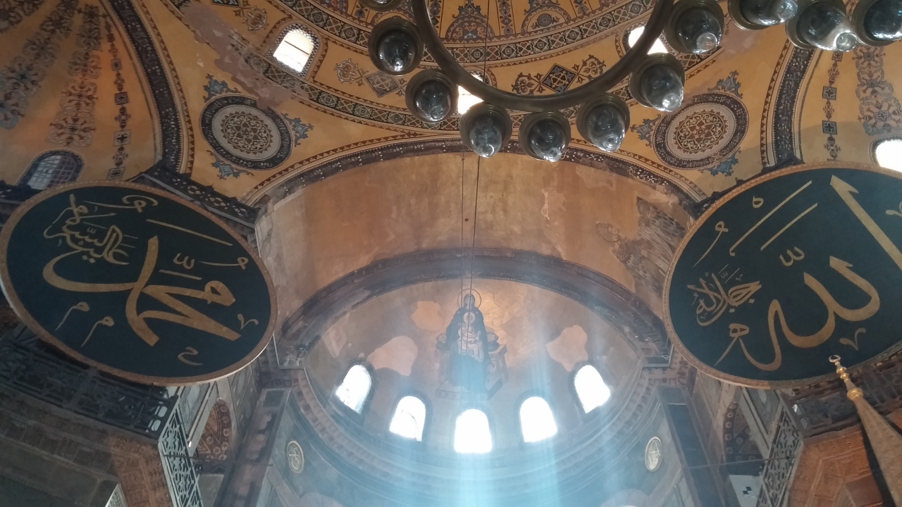アヤソフィアは4世紀ビザンチン帝国のコンスタンティヌス2歳の時に建てられた大聖堂でした。しかし、1453年コンスタンティノープルがオスマントルコ帝国による征服ながらモスクに改造されました。内部のモザイク壁画は石灰とクランクの文字で覆わでした。20世紀初頭の現代のトルコ共和国が発足し、この場所は、アヤソフィア博物館になって、現在では、キリスト教とイスラム教が共存する空間がしました。個人的にはイスタンブールの最高の建築物だと思います。