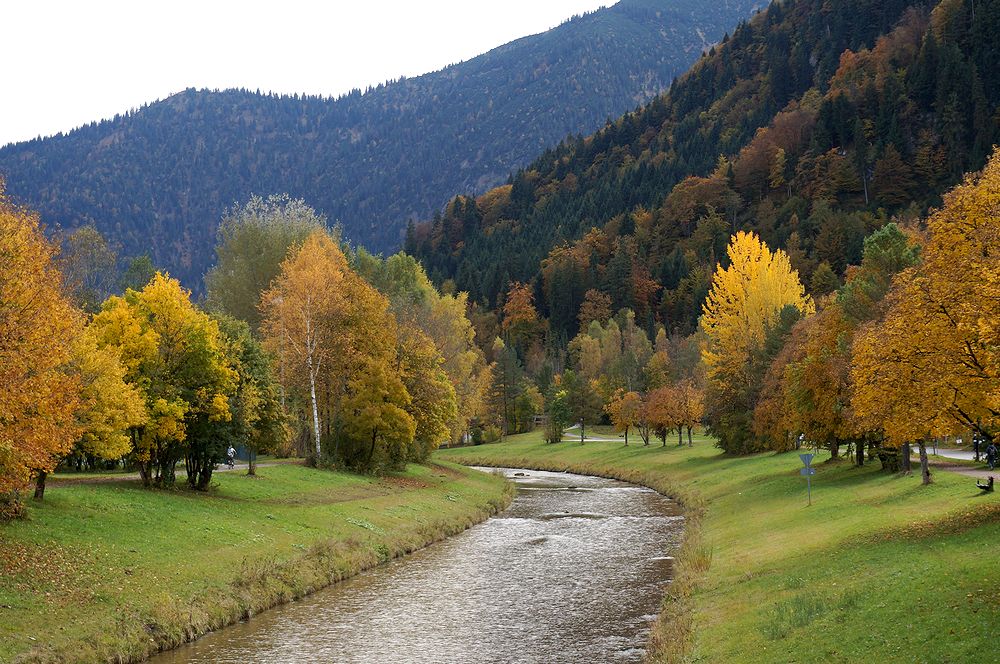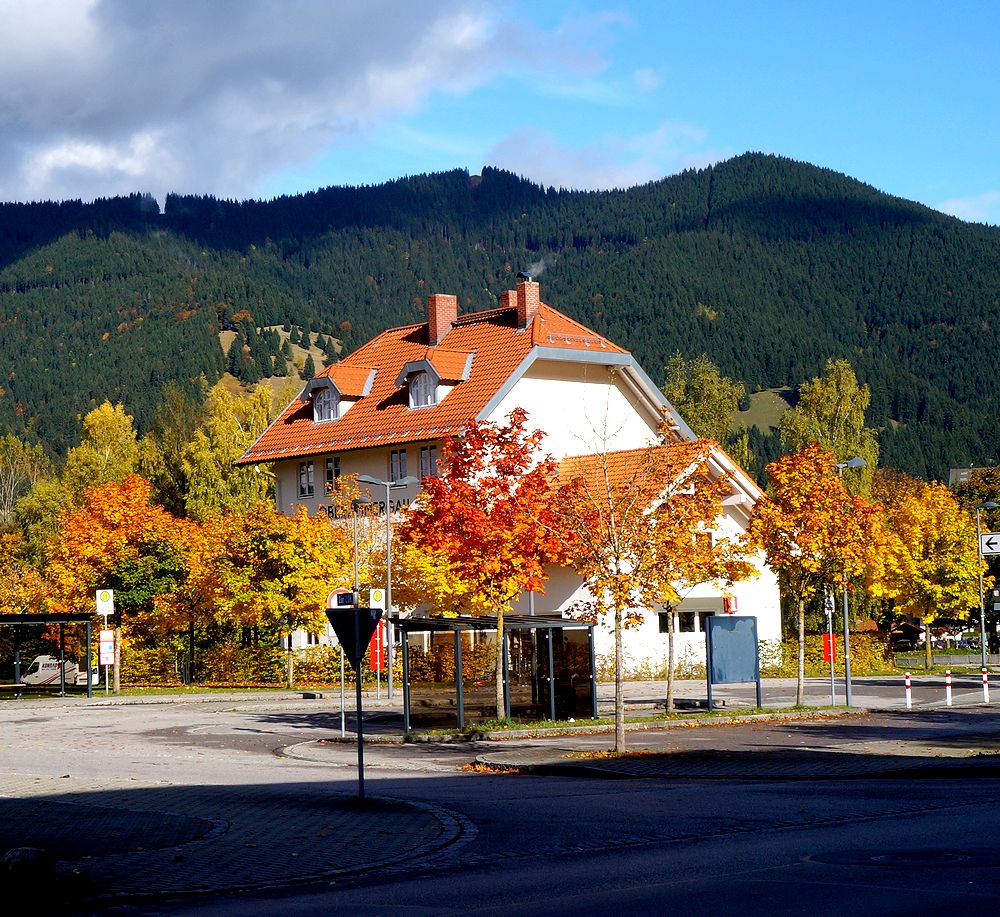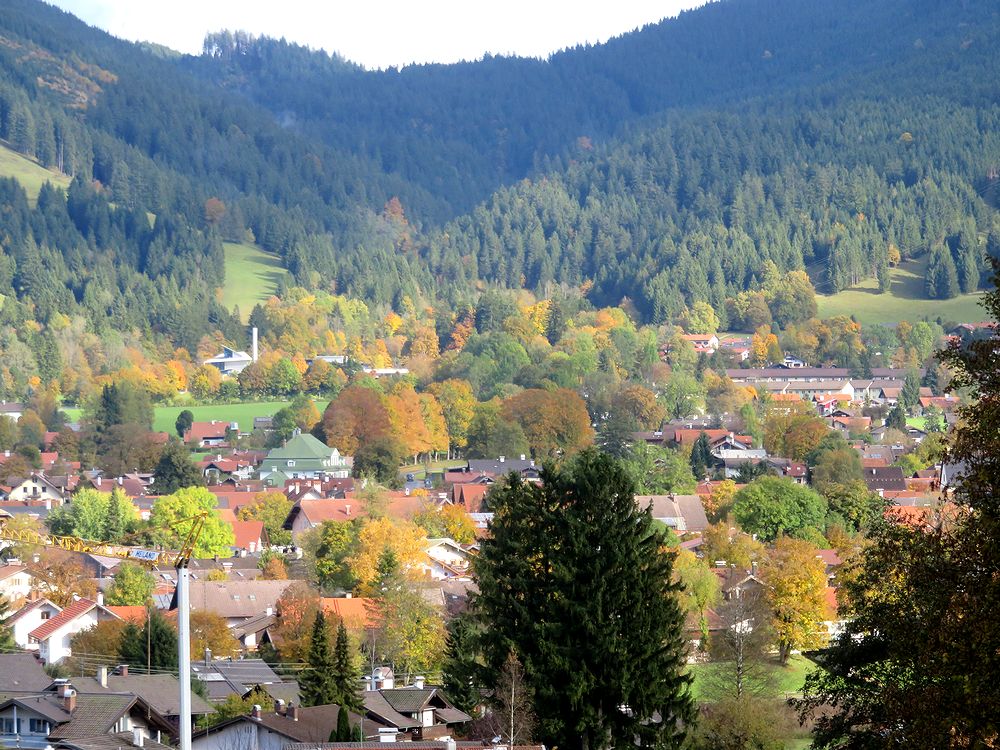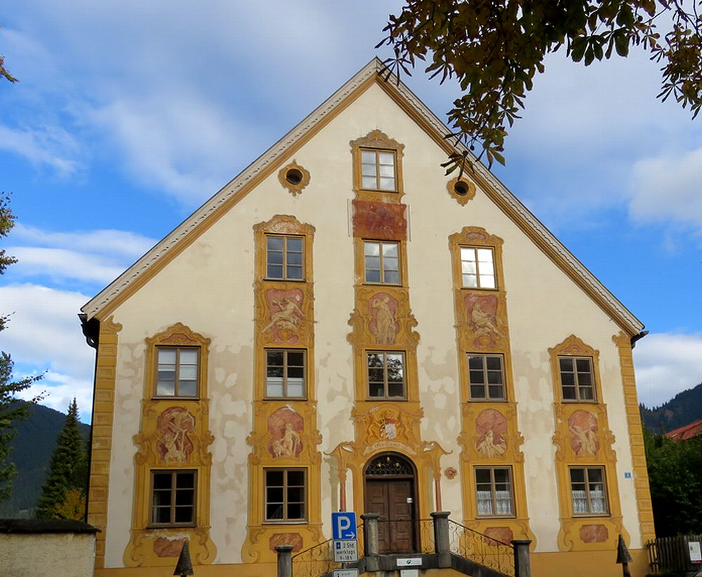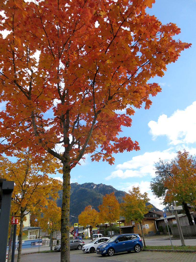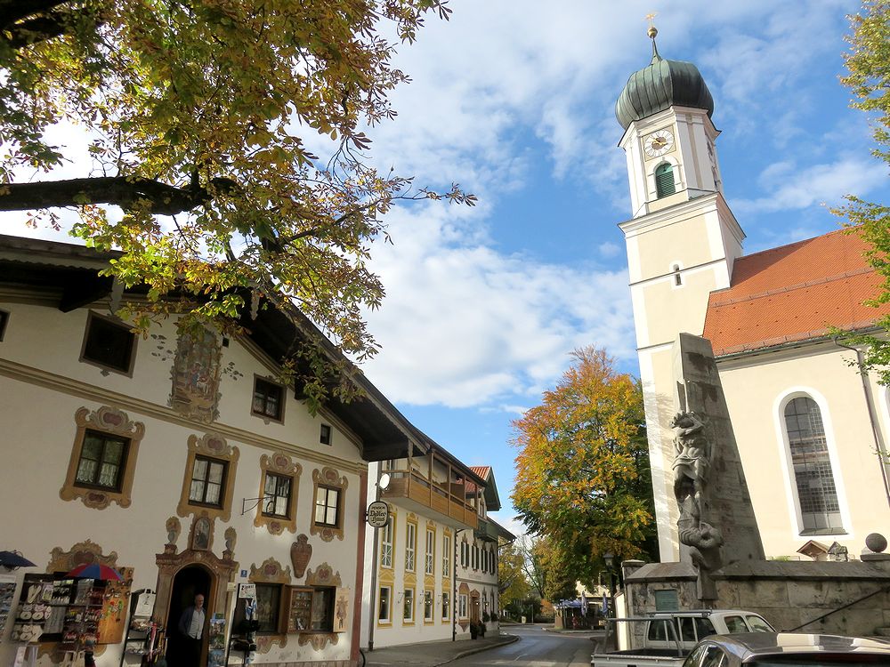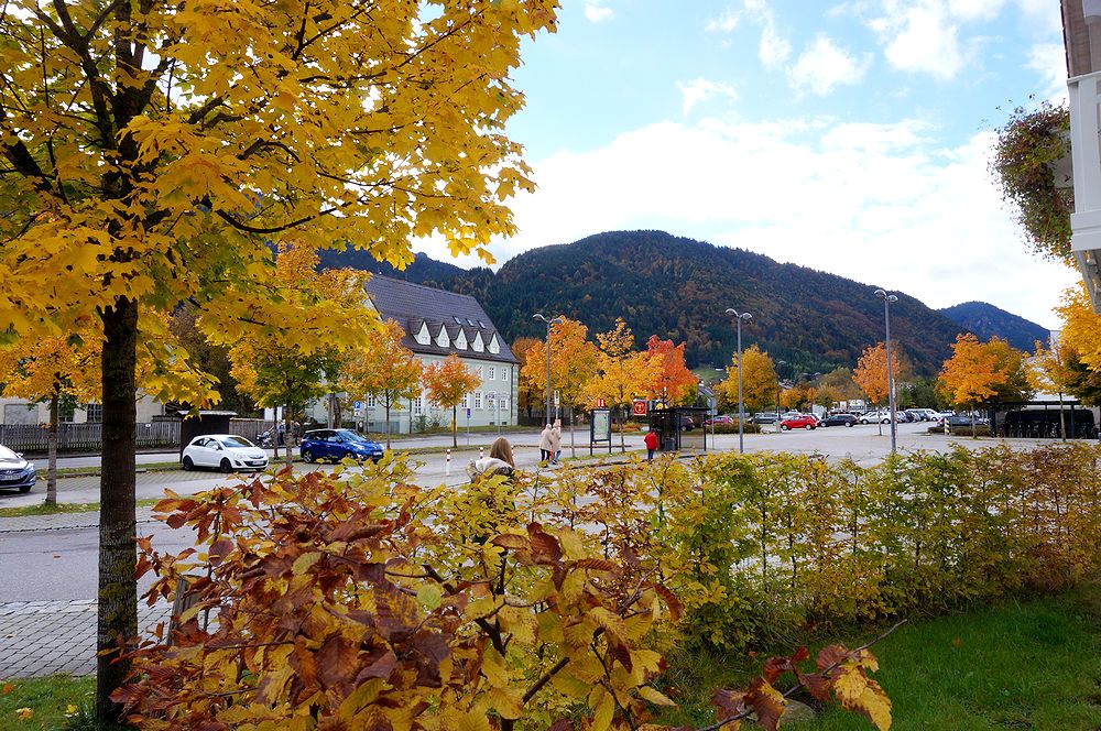 2016年10月中旬のレンタカーでの旅の途中で訪れ、駅近くの宿に宿泊し、カメラ片手にゆっくり散策しました。家の壁のフレスコ画と木彫りの町で有名ですが、町のそばには川が流れ、カモが泳ぎ、周囲は紅葉した山に囲まれ、実に牧歌的で静かな村でした。この時期町中の紅葉はピークを迎えており、どこを撮影しても絵になる風景でした。ここはキリスト受難劇を10年に一度、村人総出で演じることで、世界中から観光客が押し寄せることでも知られています。この静かな村がそのときばかりは観光客であふれかえるなんて想像できません。普段はリンダ―ホフ城に近いということから、ツアーの途中に立ち寄るだけという人が多いようですが、今回家庭的な宿に宿泊して、ゆっくり散策できたことはよかったです。とてもいいところでした。