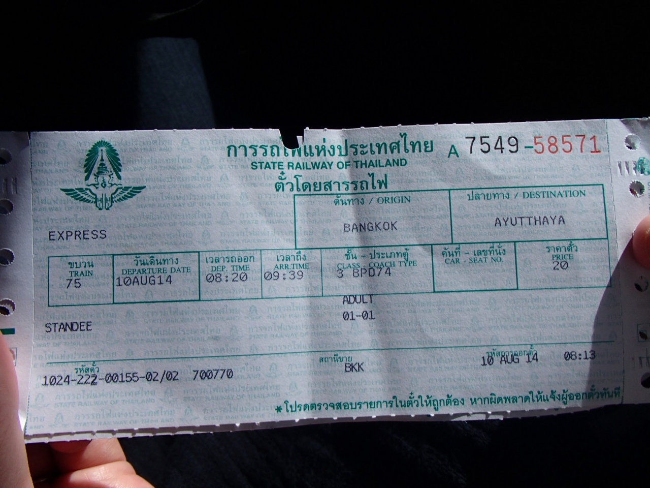 途中、駅でもないところで停車したり、なぜか逆走しだしたり、よくわからない事態の連続で1時間20分のところ、2時間位かかってアユタヤに到着しました。