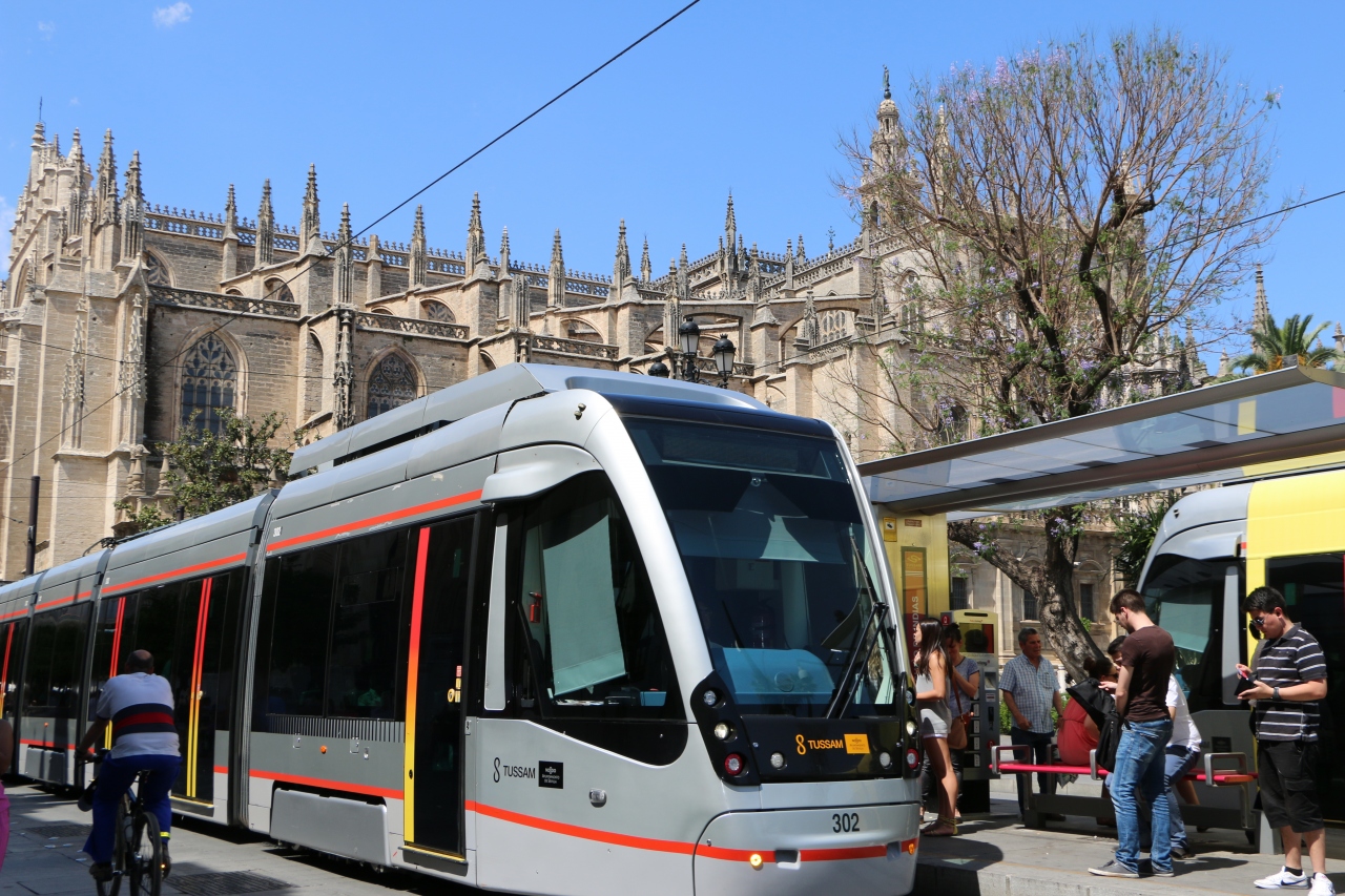 カテドラルの西面がこの通りに面しており、ヌエバ広場から発着するトラムも走っています。