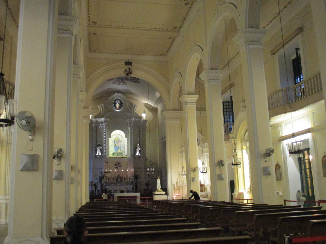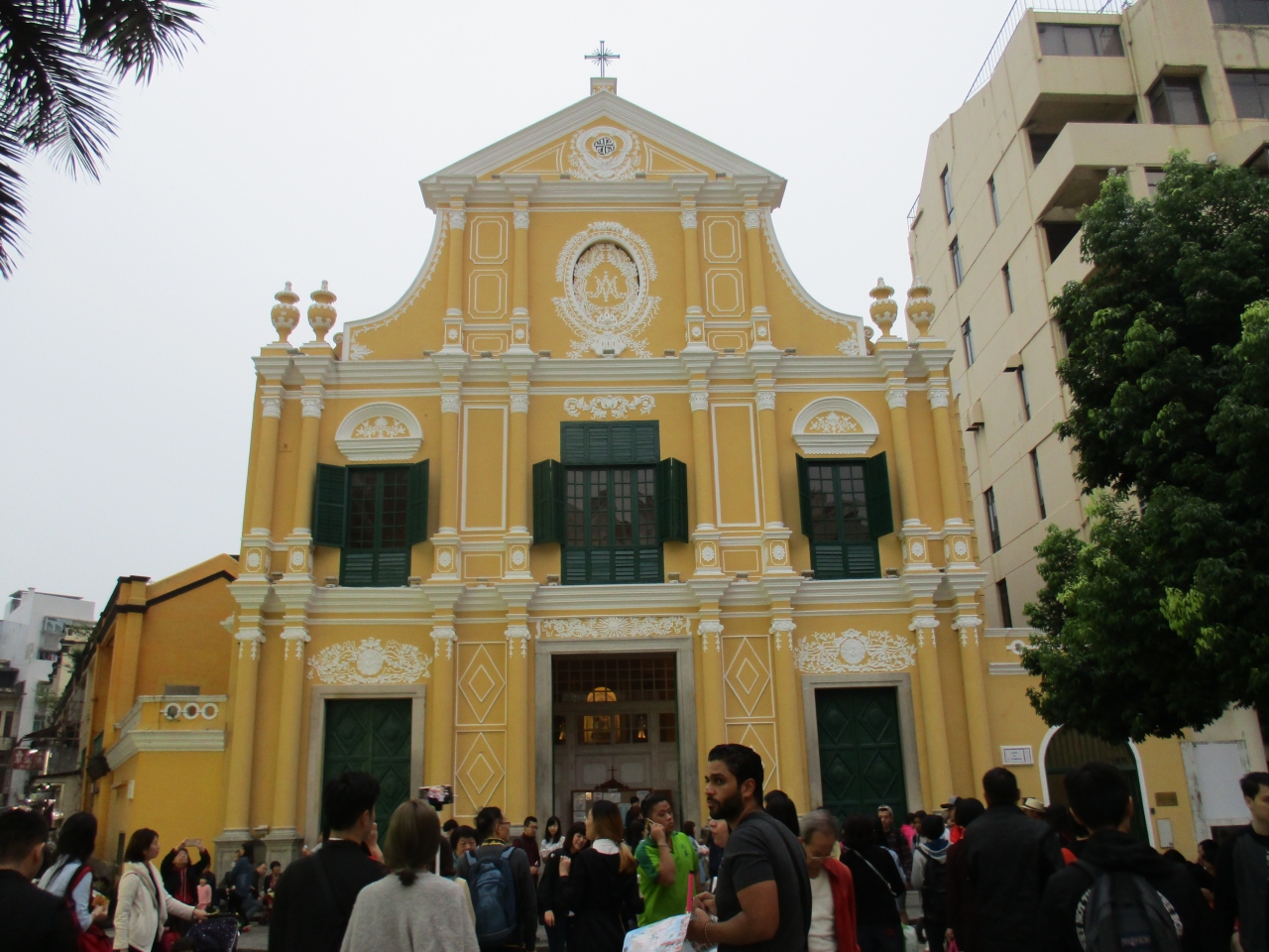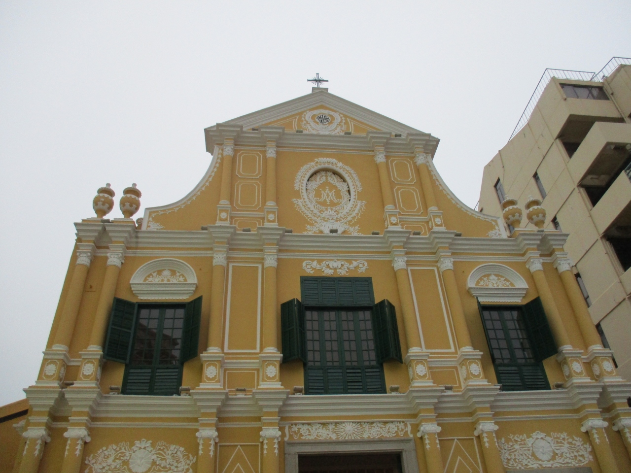 セナド広場を奥に進んで行くと、正面左手にクリームイエローの石造りの教会があります。