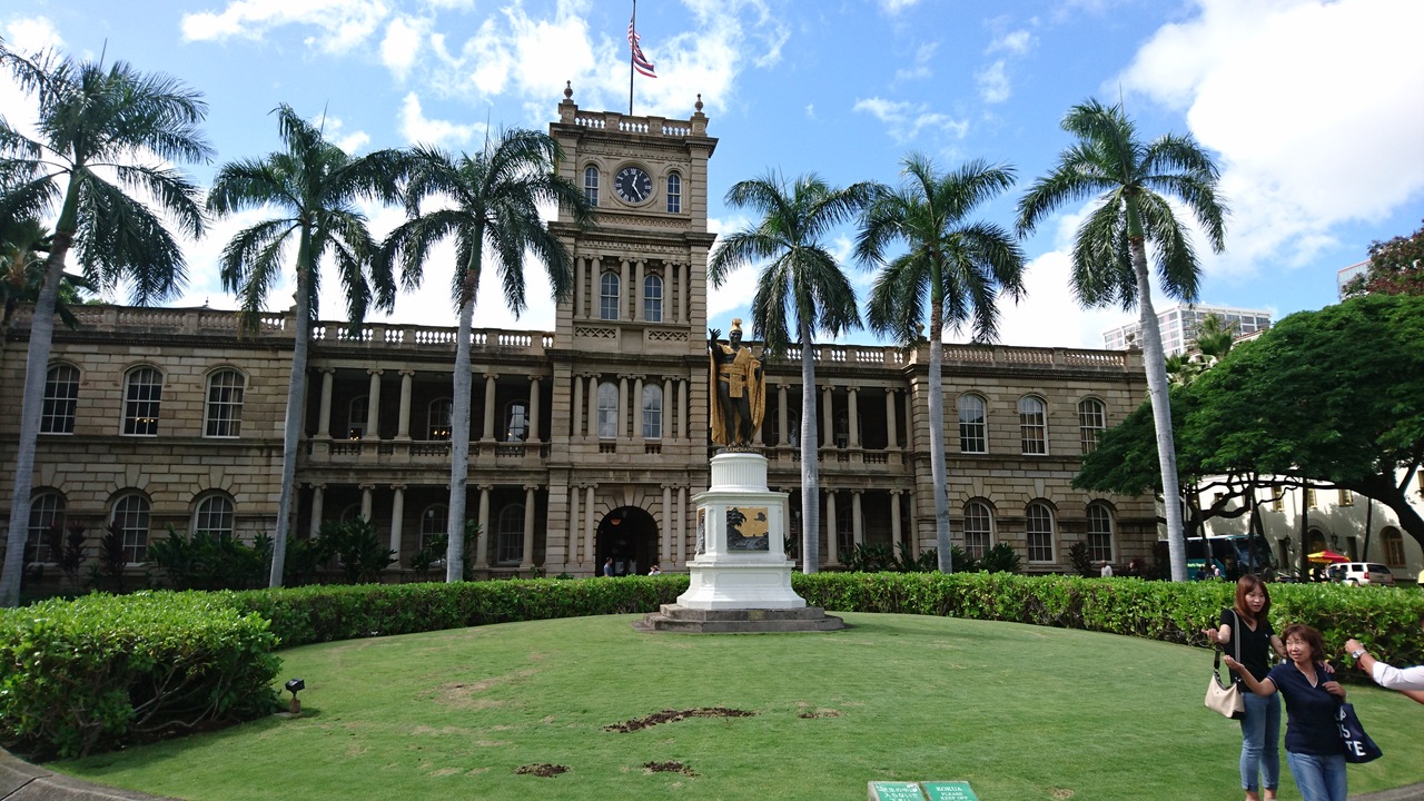 カメハメハ大王像はハワイ州政府を中心とした官公庁や金融の中心地にあります。