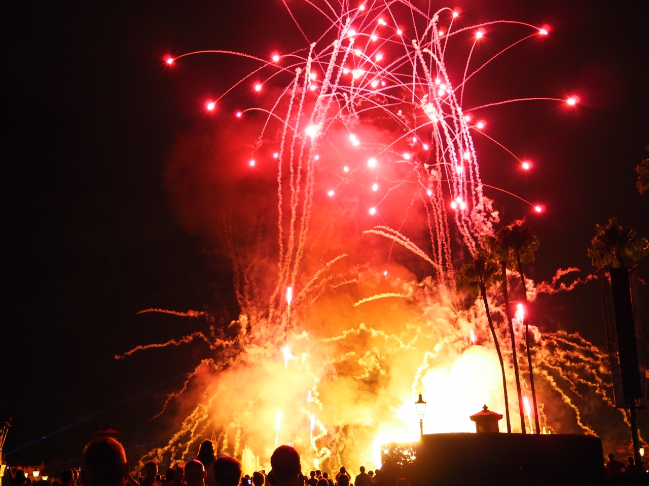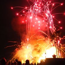 さすがに真ん中の球体は見えないけど、上に上がる花火はバッチリ見えます。