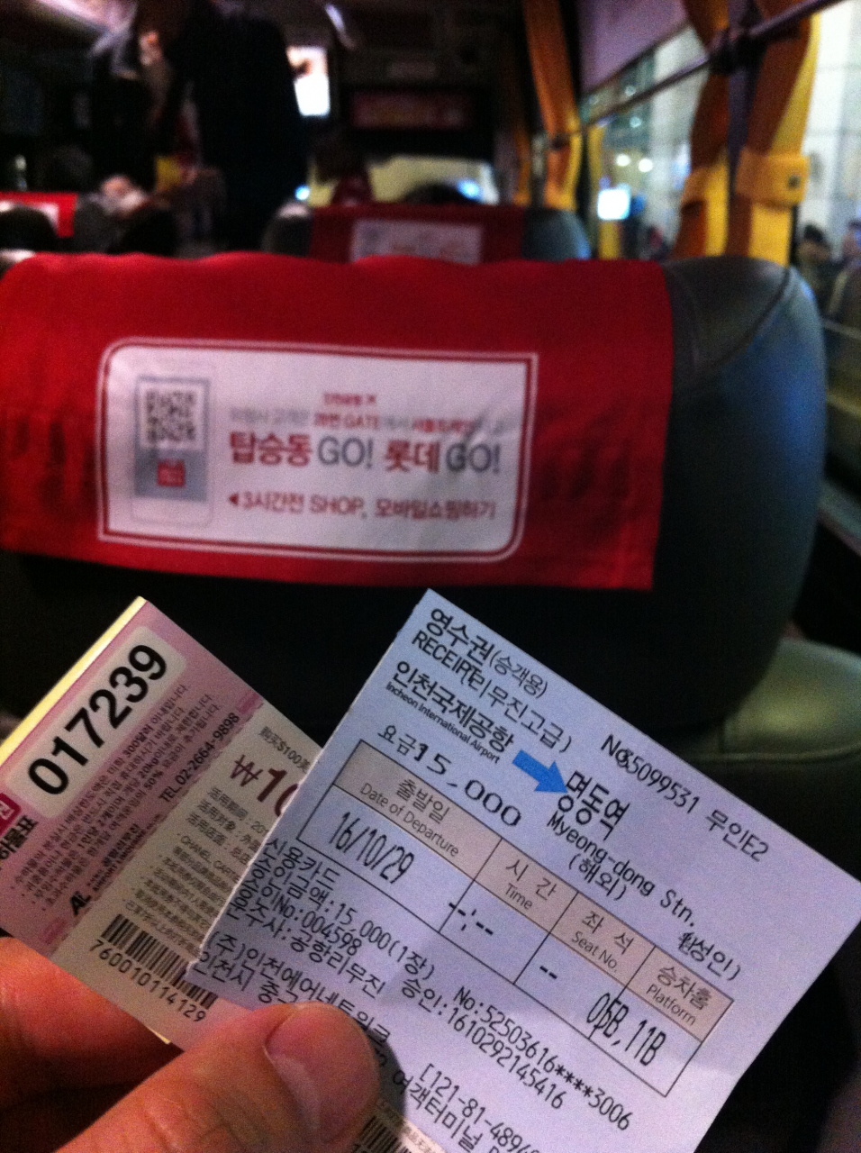 お値段が、鉄道などに比べると割高ですが夜20:00以降に到着した場合は、こちらが安心です。ソウルまでは1時間くらいかかりますが確実です。主要な駅やホテルなどにも停車場があり、鉄道で行くより便利な場合もあります。切符も自動販売機で喋らなくても買える。発音などわからんでもいい。