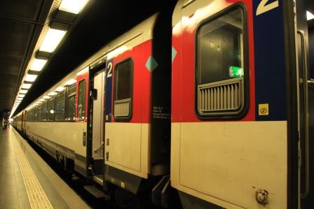 入国審査を終えて、同じフロアのまま列車の表示に従って進んでいくと迷うことなく空港駅のコンコースに到着。左側に大きく駅の施設が伸びています。この駅でスイスフレックスパスとハーフフェアカードのヴァリデートをまずやらないと…と先へ先へとずんずん進んで行って失敗。並んだ売店を抜けても抜けても「みどりの窓口」が見つかりません。逆戻りしてみて、なんのことはない、空港から出て来たすぐのところ、ホームに降りるエスカレーターの脇に「みどりの窓口」はありました。
