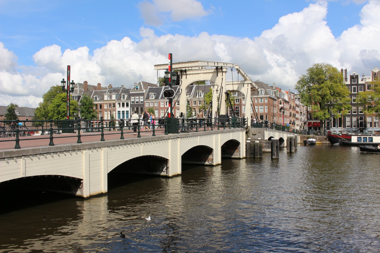 アムステルダムにある木製のハネ橋の1つ。ガイドブックにあったので、中央駅から少し離れますが行ってみました。きれいな白い橋です。この辺りまで来ると、観光客の人口密度が減り、ゆっくり歩くことができます。今回は見られなかったので残念ですが、夜はライトアップされるようです。