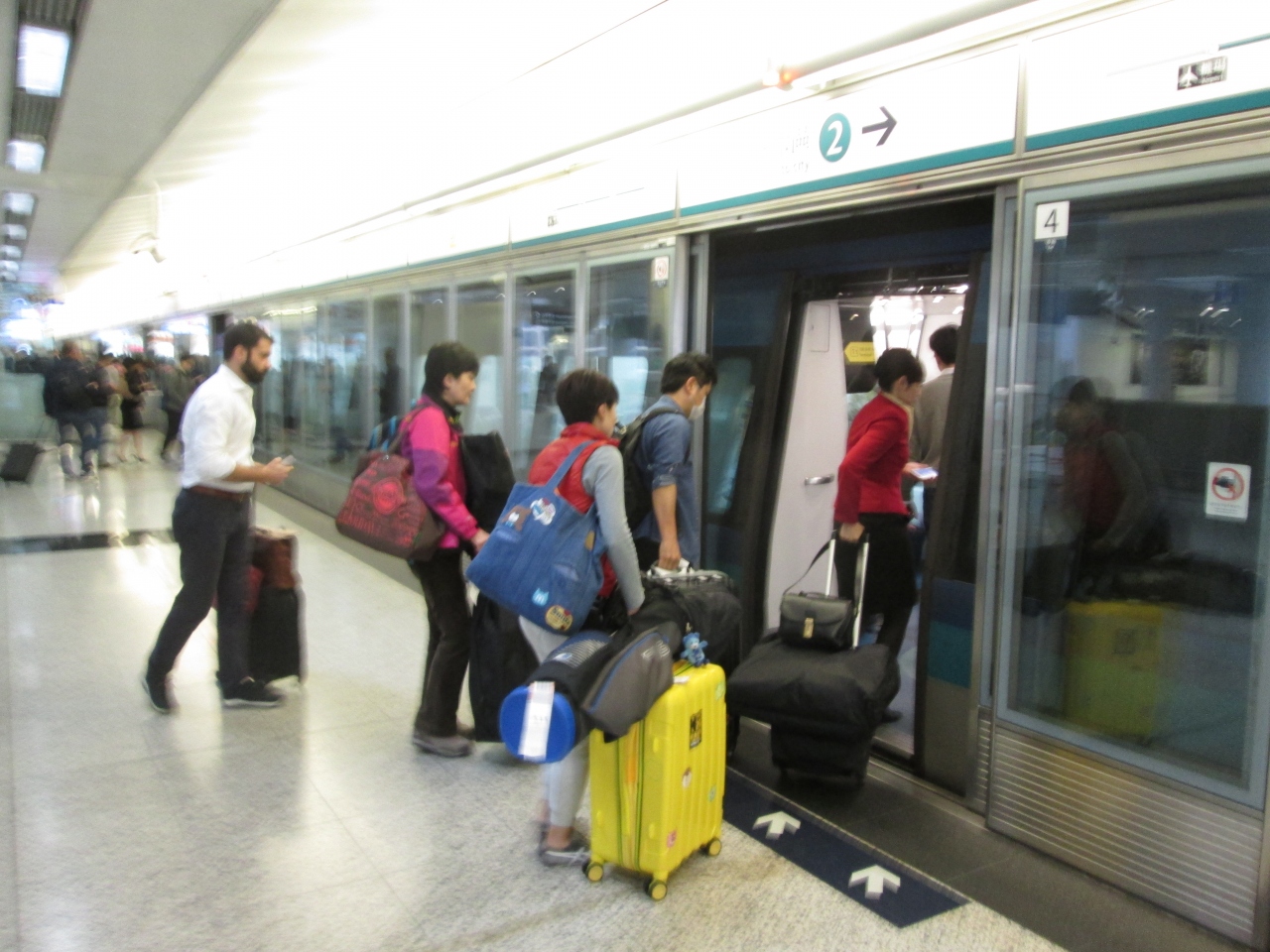 香港国際空港の機場駅はヨーロッパ駅のように改札がなく、各自で切符を購入してからエアポートエクスプレスに乗り込む必要があります。有人窓口は行列が出来ていることがあり、並んでいると列車が到着して乗れないことがあるので、自動券売機を利用した方が簡単で早かったです。