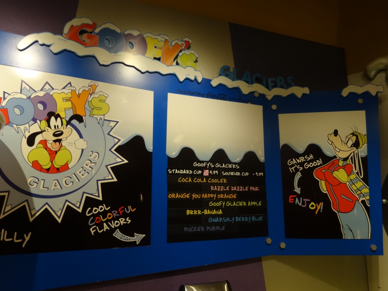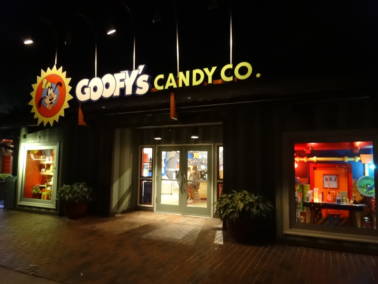 お菓子やさんです。しかもグウフィーがオーナーです。こちらはスプリングスにあるバージョンです。店内は甘い香りがいっぱいです。ジェリービーンズで作成した看板もあり撮影スポットですね。ブスなミッキー&ミニーのケーキは公式とは思えない低クオリティ。